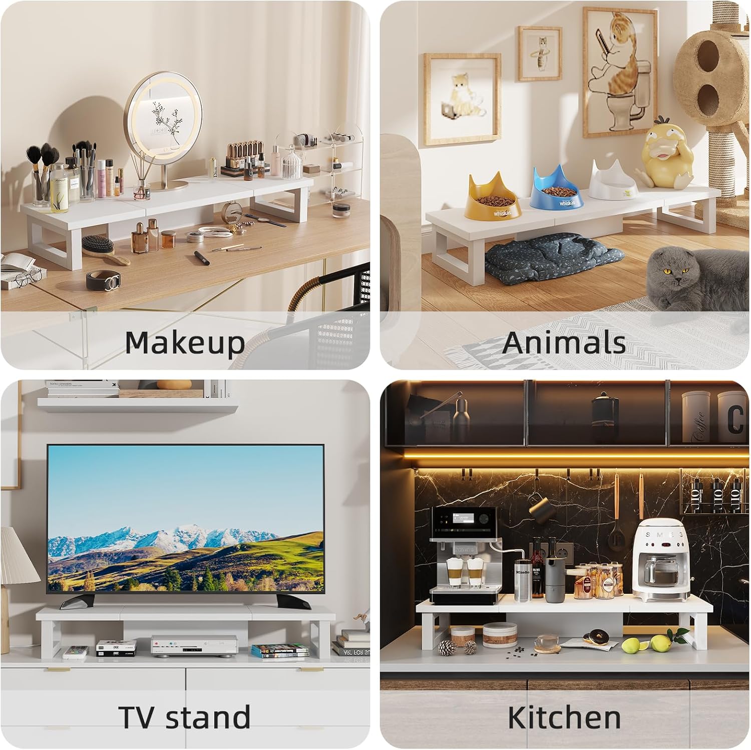 - 【Multifunctional Monitor Riser 】The monitor stand has powerful storage function of keeping the table clean.It can be used as a monitor stand riser, printer stand, laptop riser, or a TV stand, makeup, animals. Extra storage space underneath organize your office supplies.