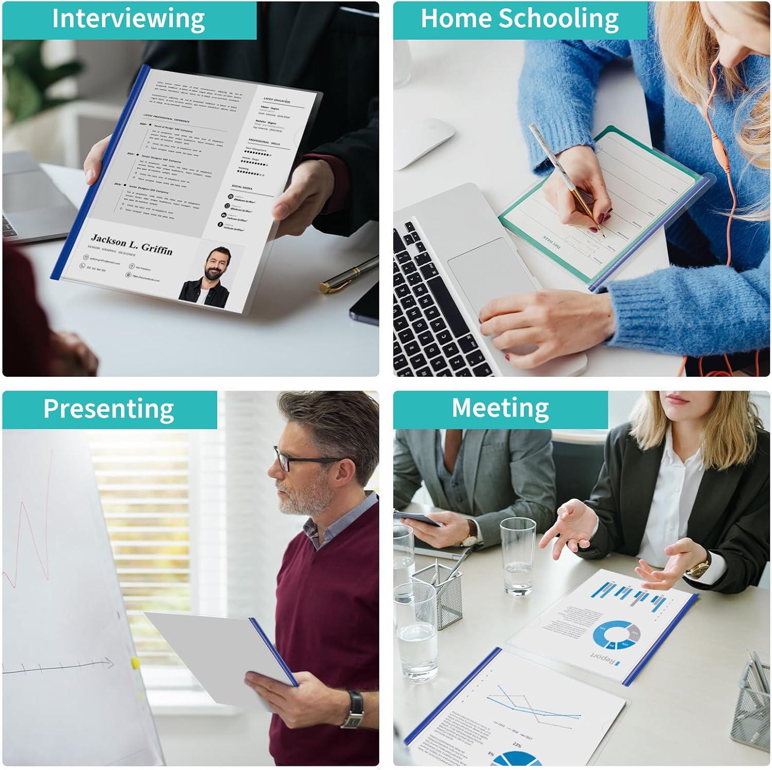 - 【25-Sheet Capacity】 The 5 mm sliding bar holds up to 25 sheets of 20# paper, offering a compact and practical solution for daily document organization. The 5.5 mil (140 mic) clear cover resists bending, tearing, and moisture, keeping files in good condition. The rounded corners offer a smooth touch and help prevent paper damage. Its compact design makes it easy to carry, suitable for quick presentations and reports.