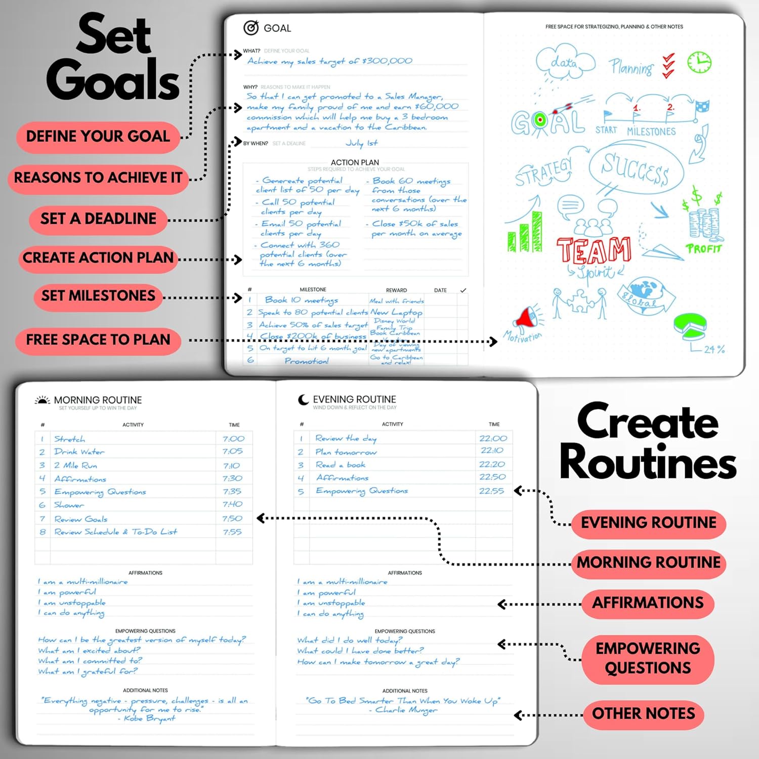 - STAY ALIGNED WITH YOUR GOALS – Use built-in goal-setting tools and review prompts to stay focused on long-term success—whether you’re managing business milestones, career growth, or personal development.