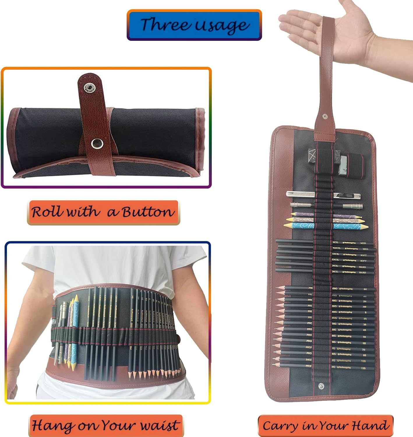 - 【Travel Portable Storage Design】You can store the sketching pencil set properly when not in use. You can even tie the canvas roll bag around your waist and start your artistic creation anytime, anywhere.