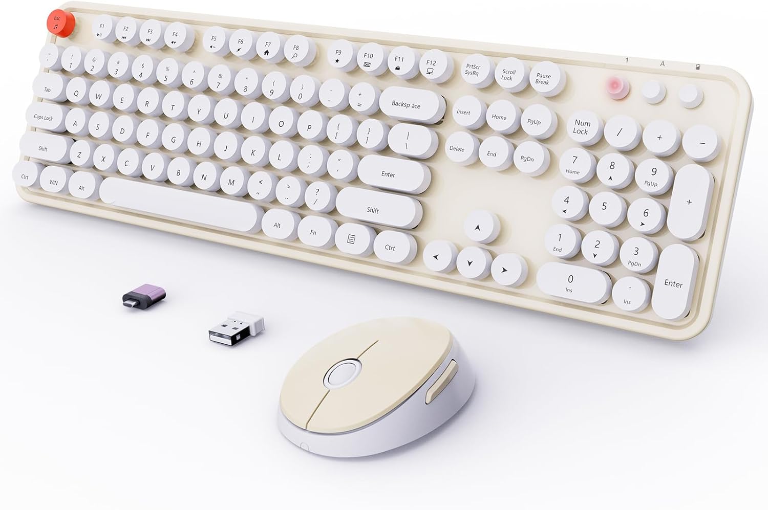 Wireless Keyboard and Mouse Combo, Ergonomic Full Size Typewriter Retro Round Keycaps Keyboard, Compatible with Windows, PC, Perfer for Home and Office Keyboards (Beige
