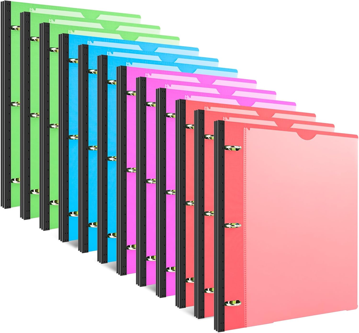 INFUN Telescoping 3 Ring Binder - 12 PCS, Flexible Round Binder with Customizable Front Cover and Clear Catalog Pocket, Holds 8.5x11 inch Paper