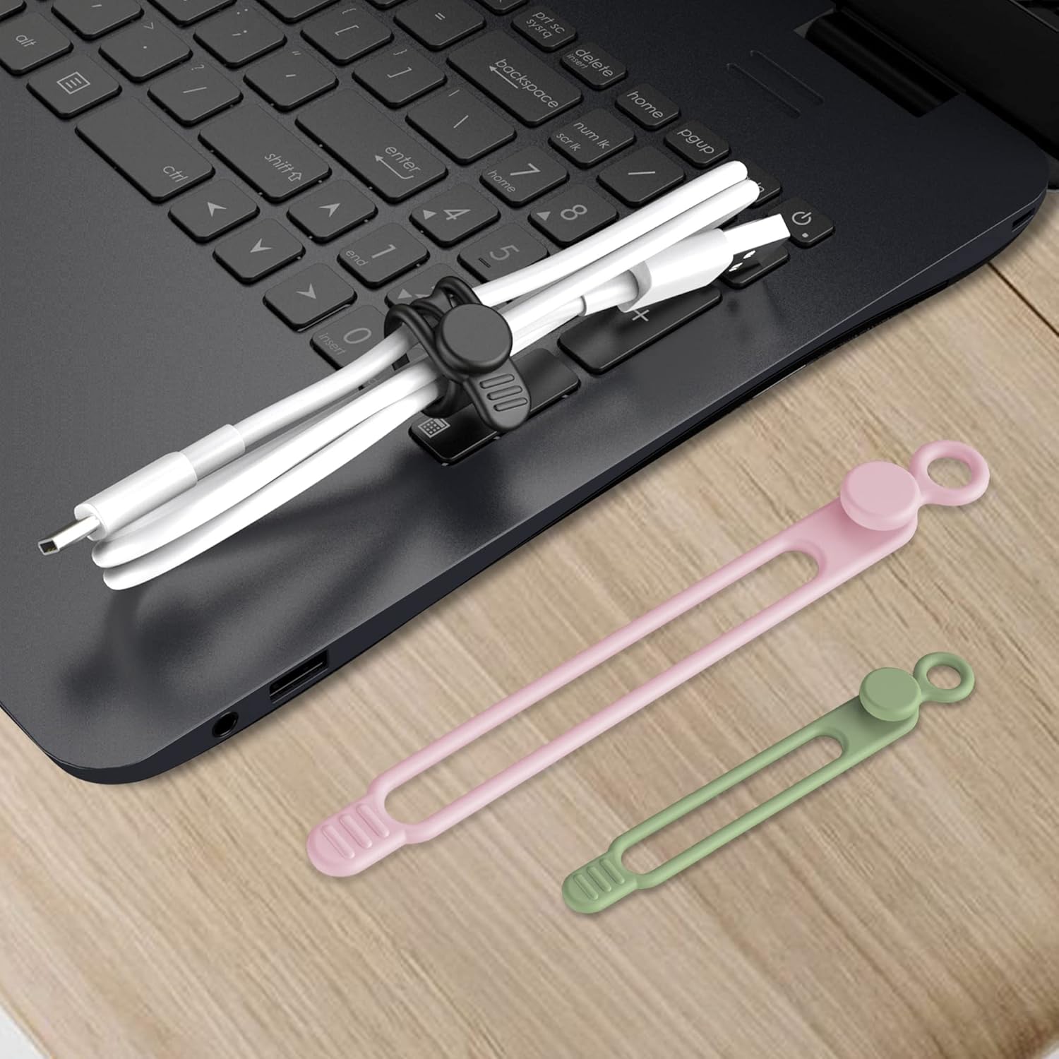Nearockle Silicone Cable Ties Cord Organizer for Cable Management, 24PCS 4.2" and 7.1" Reusable Cable Organizer Electronic Accessories for Home, Office, Kitchen, School, Travel (4 Colors)