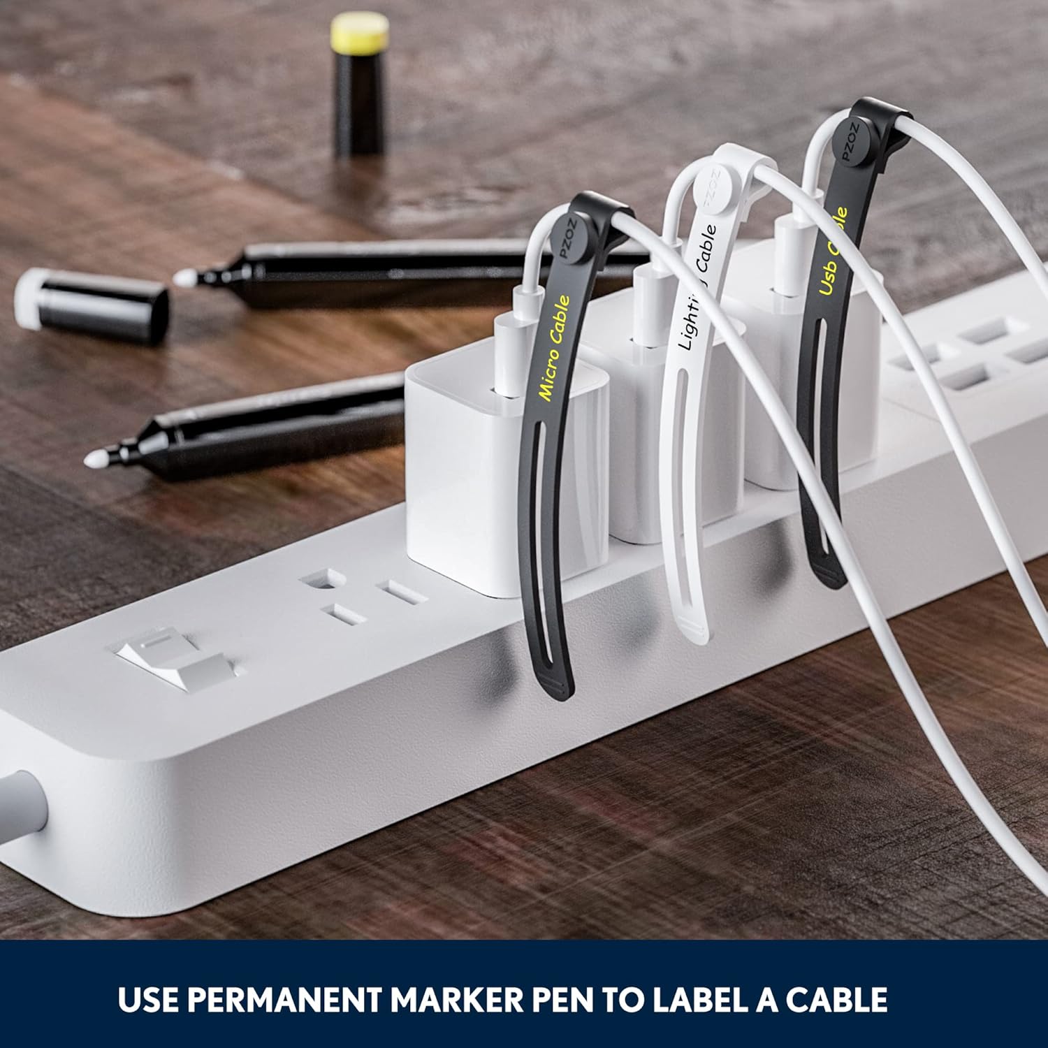 PZOZ (10 pcs) Reusable Cable Ties, Elastic Silicone Cord Organizer Straps Keeper Management Holder for iPhone Charging Cable Charger Wire Labels Desk Car and Travel Accessories (White)