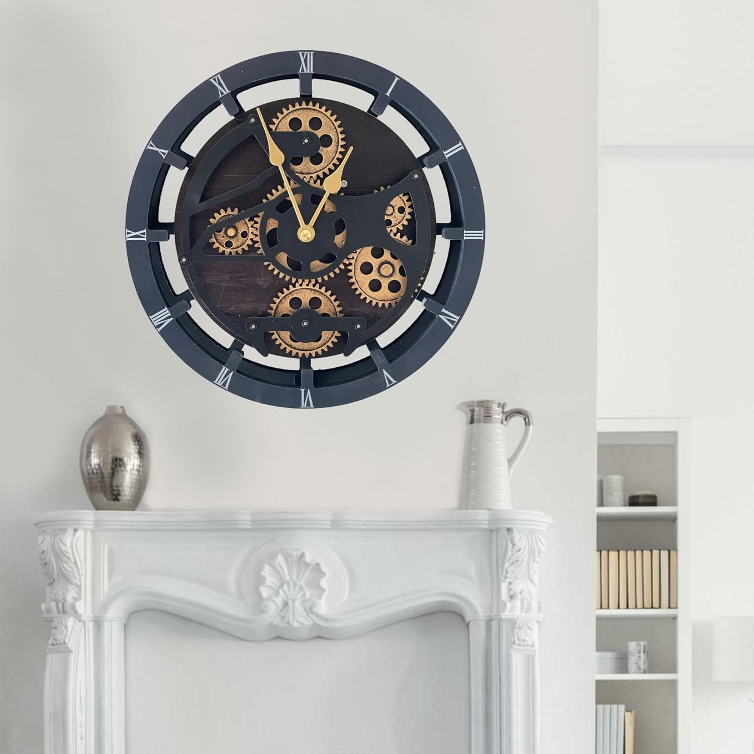 The Gears Clock 16 inches Wall Clock with Real Moving Gears Convertible into a Big Mantel Clock (Vintage Black)