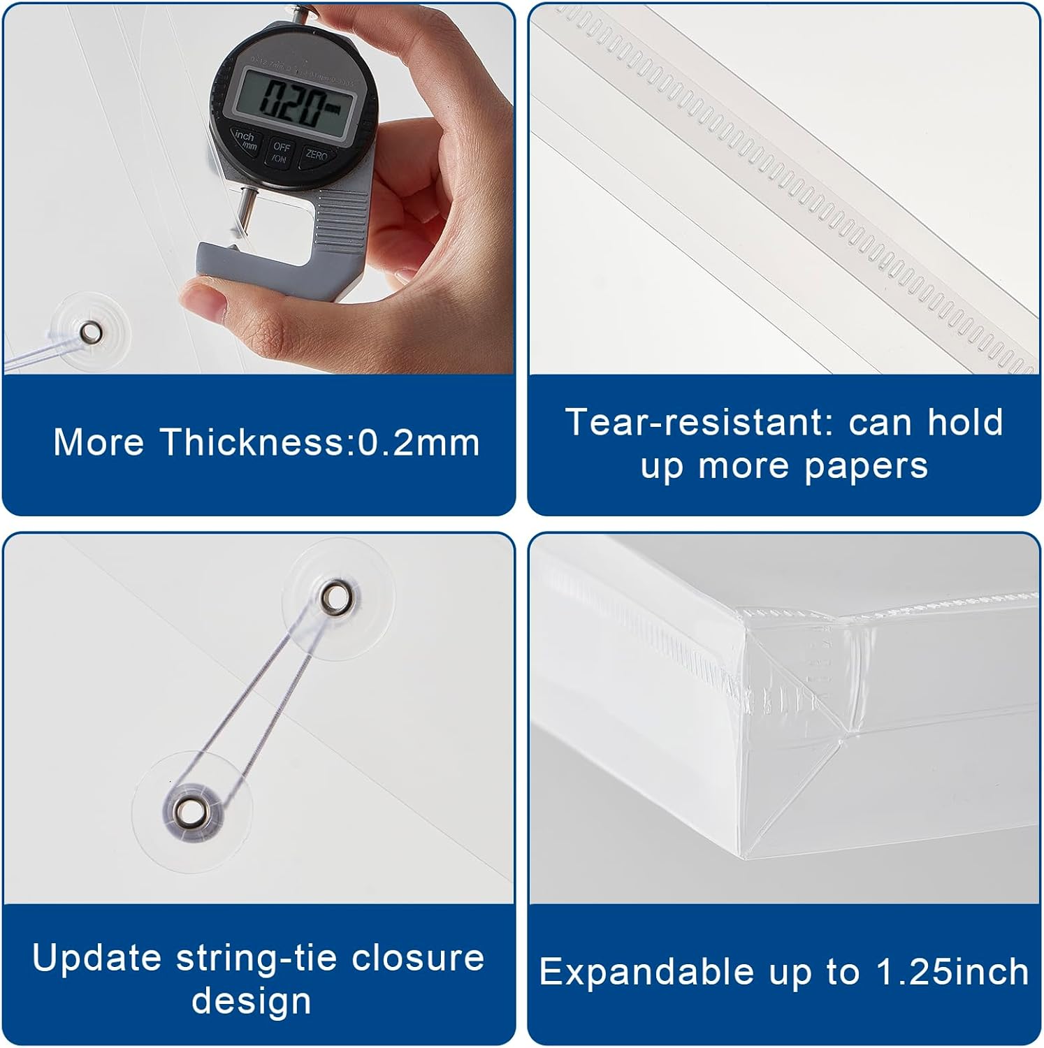 - 【Clear File Folder Size】 You will get 20pcs poly envelopes with string closure, size: 9.6 x 13 x 1.2inch/328 x 245 x 3mm, thickness: real 20c/0.2mm. Perfect for US letter/A4 size paper and other small items storage.