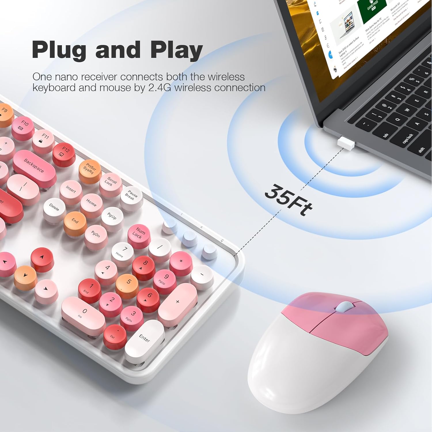 MOFII Wireless Keyboard and Mouse Combo,2.4GHz Retro Full-Size Wireless Keyboard with Number Pad and Cute Wireless Mouse for Computer PC Desktops Laptop WindowsxP/7/8/10 (Lipstick Colorful)
