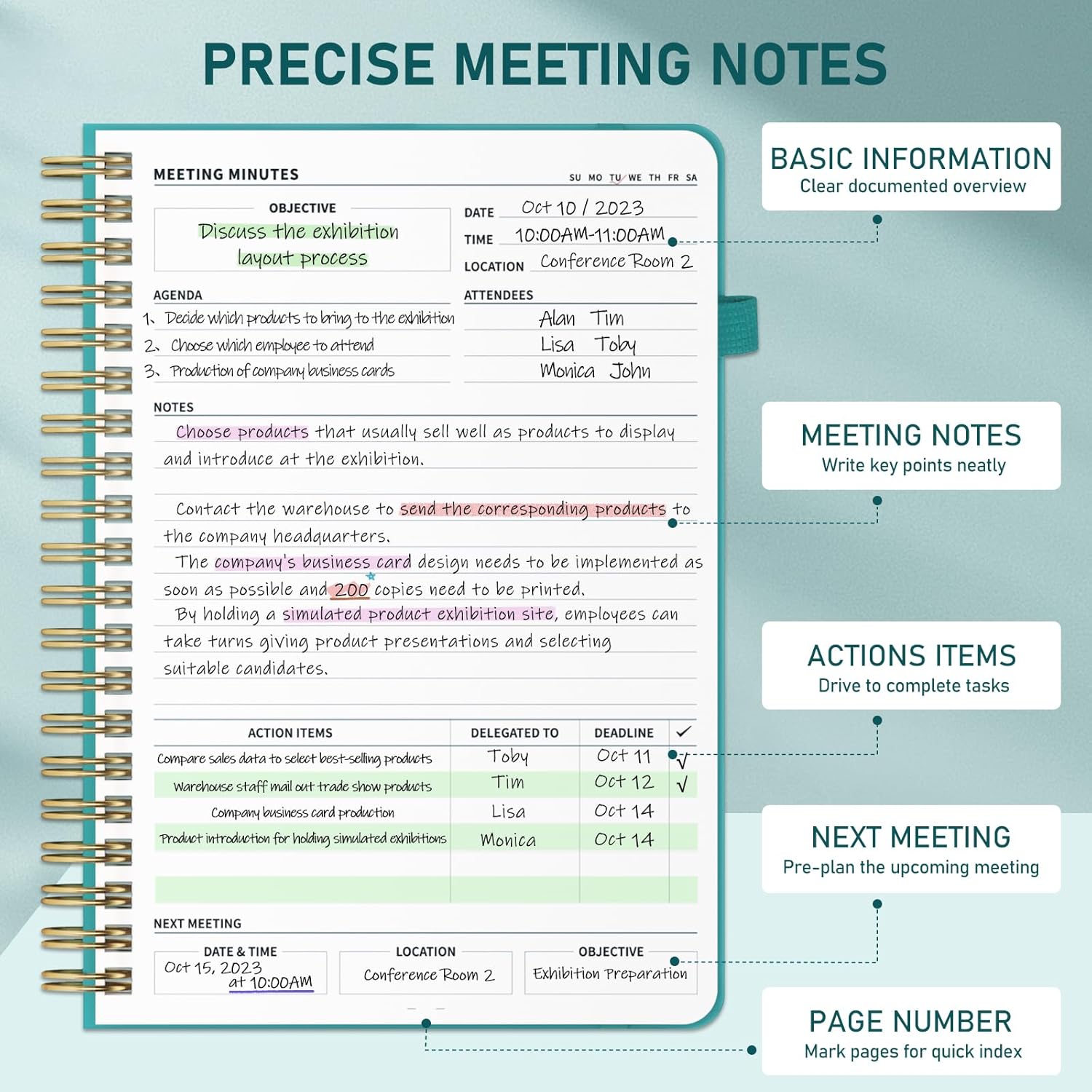 - IDEAL FOR UNIVERSITY STUDENTS & TEACHERS IN EVERY CLASSROOM MEETING: Whether you’re a college student taking seminar notes or a teacher organizing department meetings, this meeting notebook for work is designed to support focused discussions and clear planning. Perfect for back to school season, it brings structure to academic meetings, group projects, lesson planning, and lecture prep. With durable materials and a clean layout, it’s the essential meeting notebook for the academic year ahead.