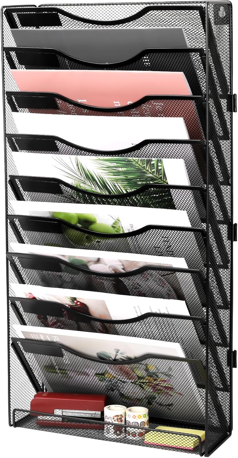 - Metal Mesh Durability: Powder-coated metal file organizer for desk resists rust & oxidation. Holds 5lbs/slot with open-grid dust prevention. Ideal for high-traffic offices.