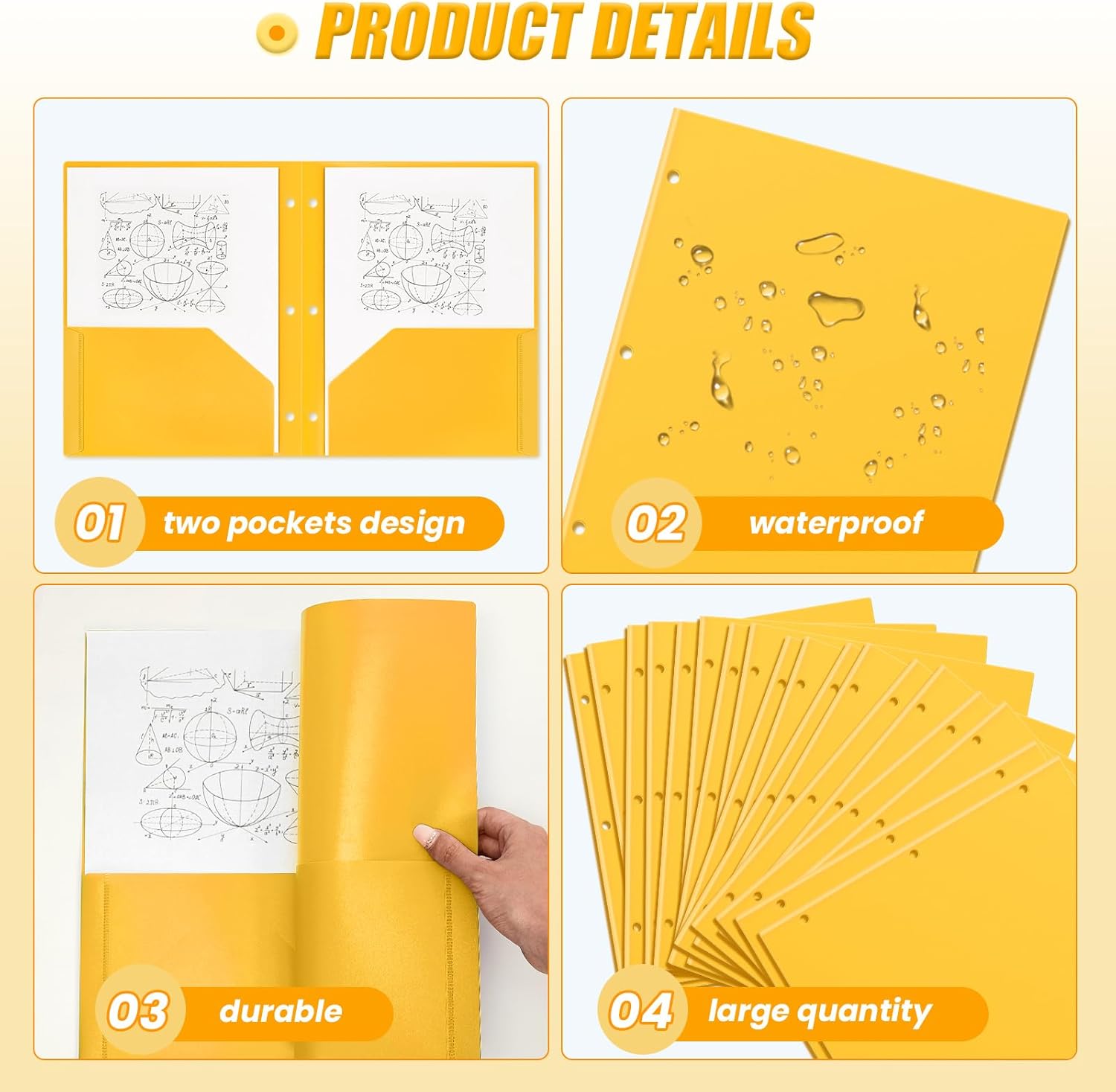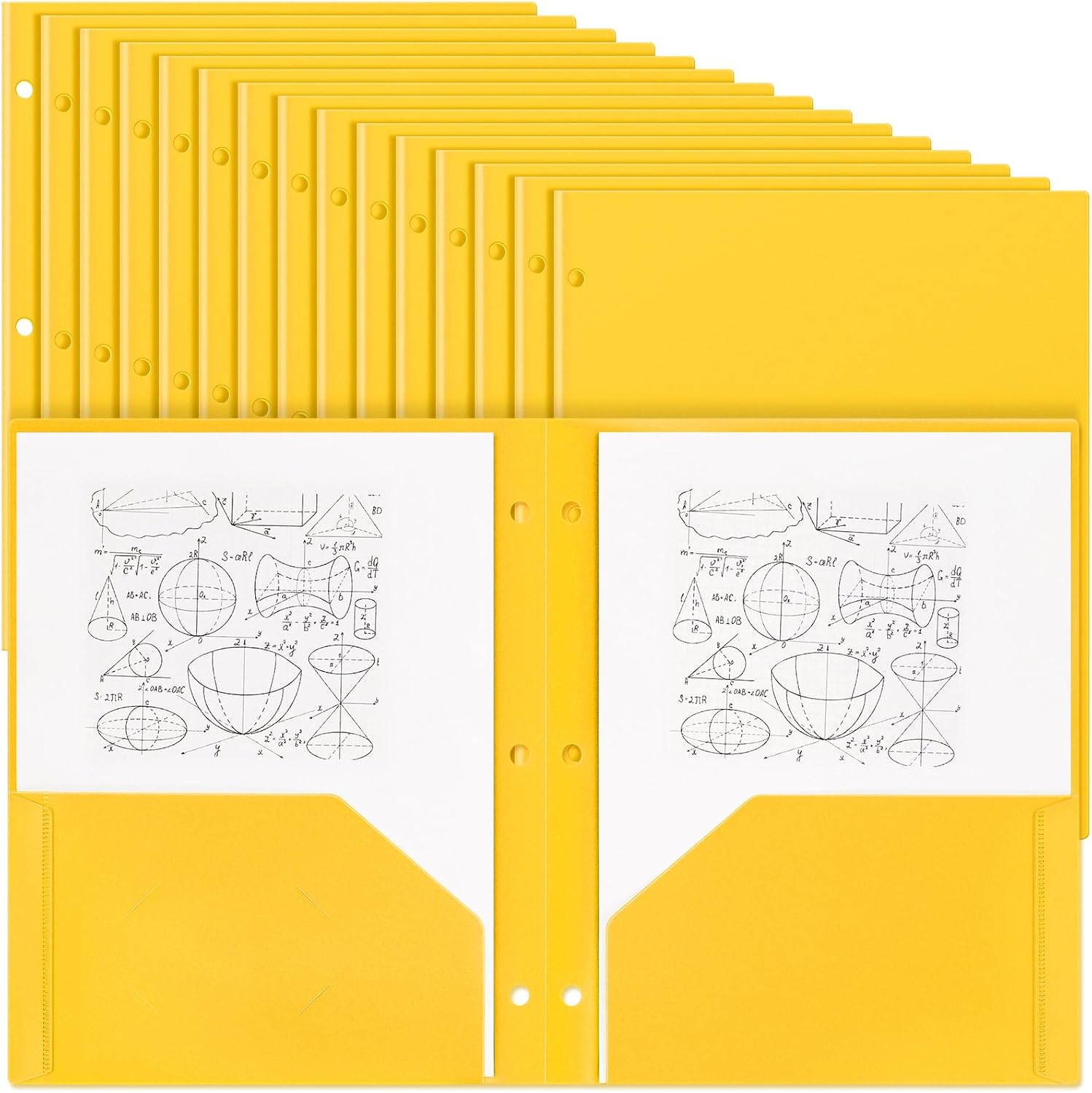 - Enough Quantity to Use and Replace: you will receive 50 pieces yellow plastic pocket folders, each with 3 holes and 2 pockets, fitting 3 ring binders and 8.5 x 11 inch letter size paper; Each pocket easily and neatly stacks 50 pages of letter size paper