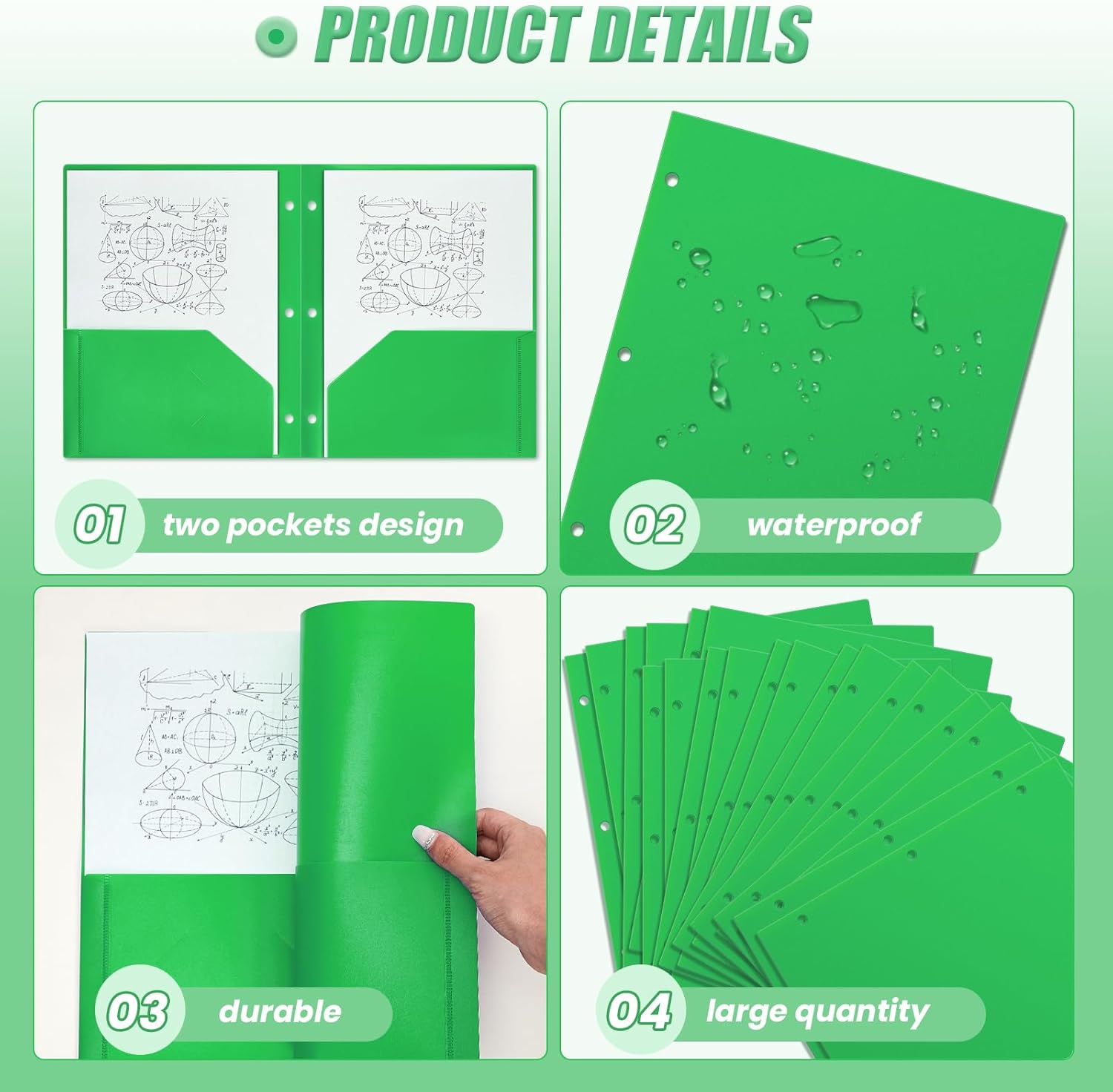 - Enough Quantity to Use and Replace: you will receive 50 pieces green plastic pocket folders, each with 3 holes and 2 pockets, fitting 3 ring binders and 8.5 x 11 inch letter size paper; Each pocket easily and neatly stacks 50 pages of letter size paper