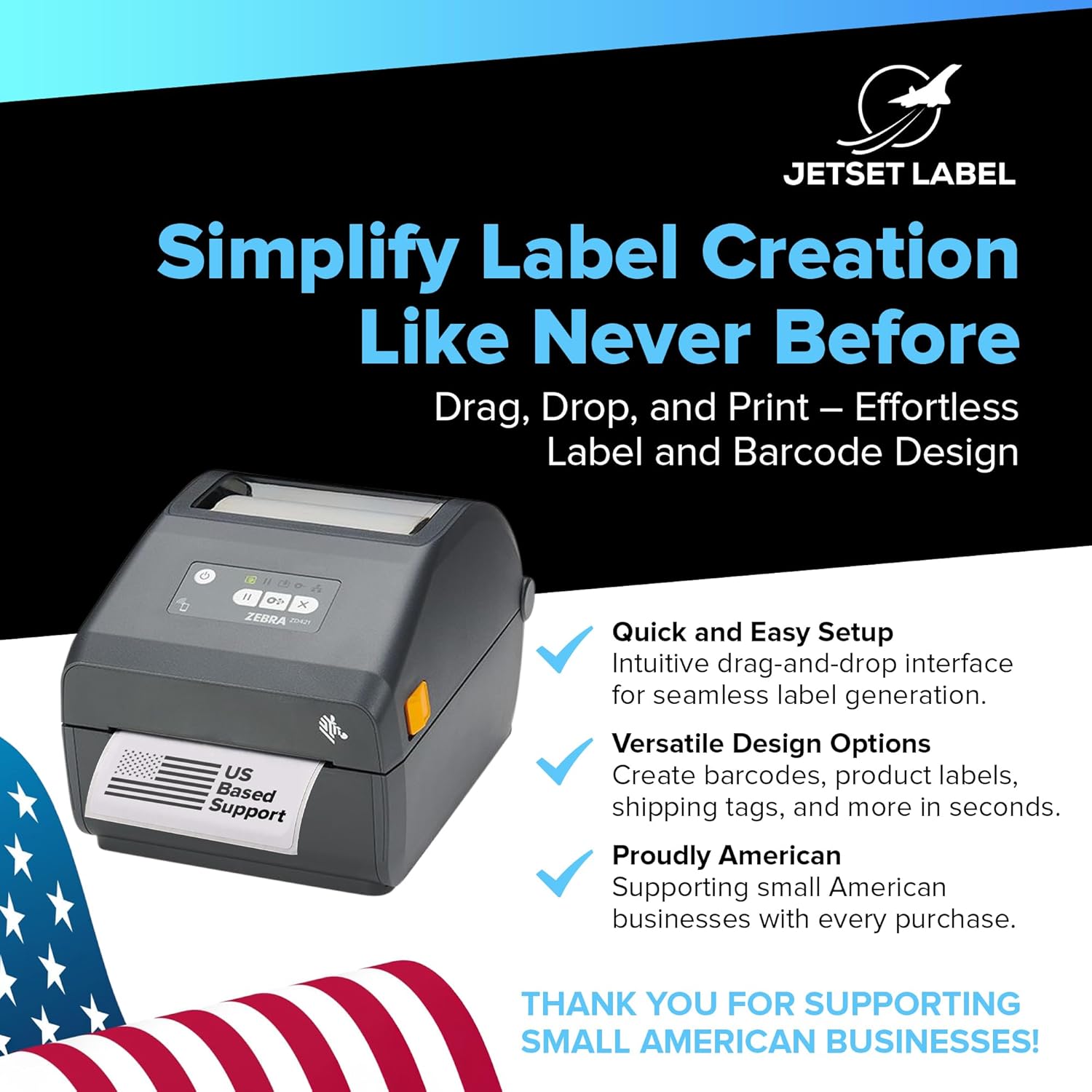 - User-Friendly Label Printer: Connects via USB; compatible with 1" core media rolls (max diameter: 5", max width: 4.25"). Includes JetSet Label design software for error-free label generation