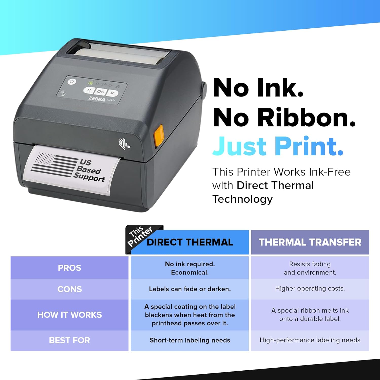 - Effortless Printing: Enjoy the convenience of direct thermal printing of Zebra shipping label printer with no need for thermal ribbons, making label creation and printing hassle-free