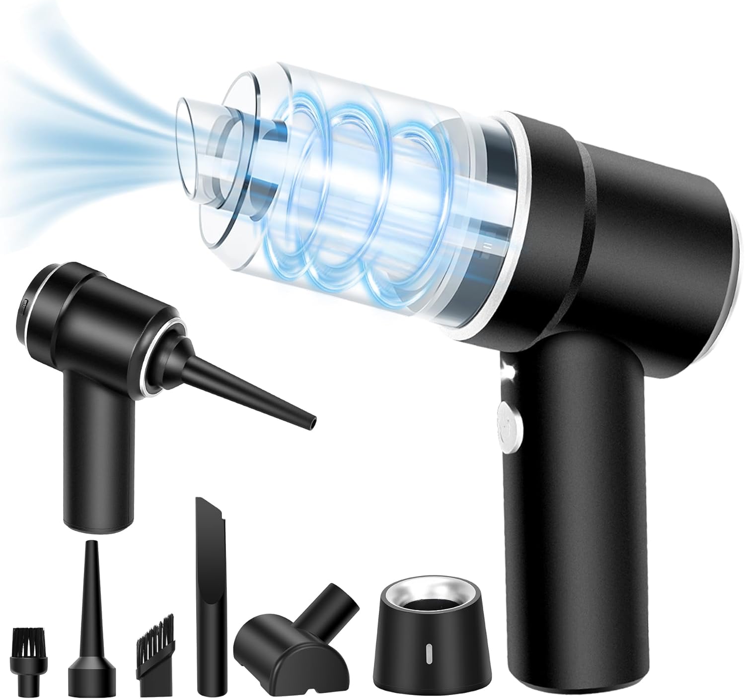 - ăSucking & Blowing FunctionăThe desk vacuum with air dusting function, one end of the accessory connection is for vacuuming effect. The other end is for the blowing function, as an air duster, the extended blowing nozzle concentrates suction to deeply clean.