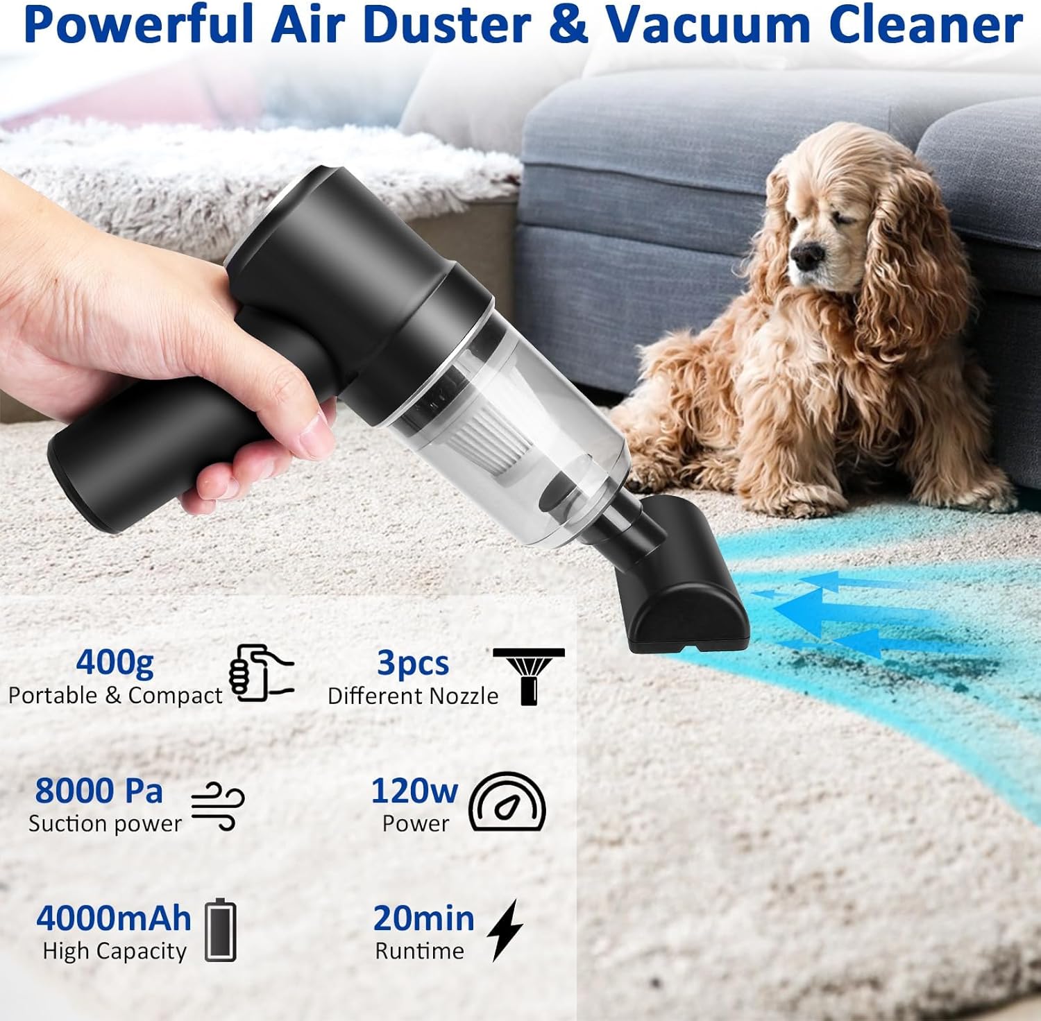 8Kpa Mini Handheld Vacuum Cleaner,120W High Power Cordless Car Vacuum, 2 in 1 Keyboard Vacuum & Air Duster with LED Light & Multi-Nozzles for Car, Computer, Sewing Machine