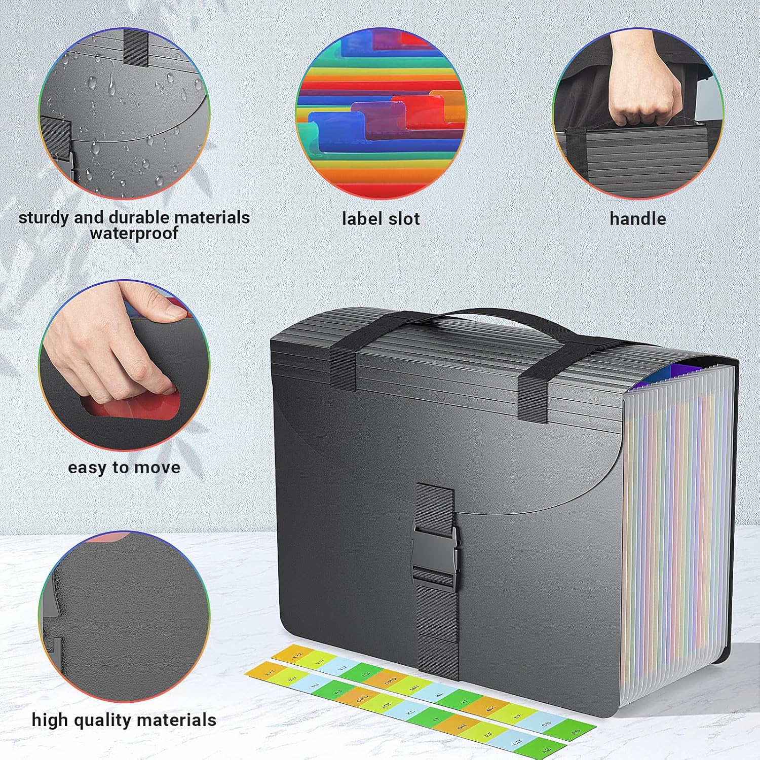 - ✔【SUPERIORITY】This innovative file organizer,designed with a durable handle and a fashion buckle, successfully upgraded from traditional expanding file folders. More easily take away all important documents any time and anywhere when hold a good amount of documents, the buckle is very good to protect the safety of files.