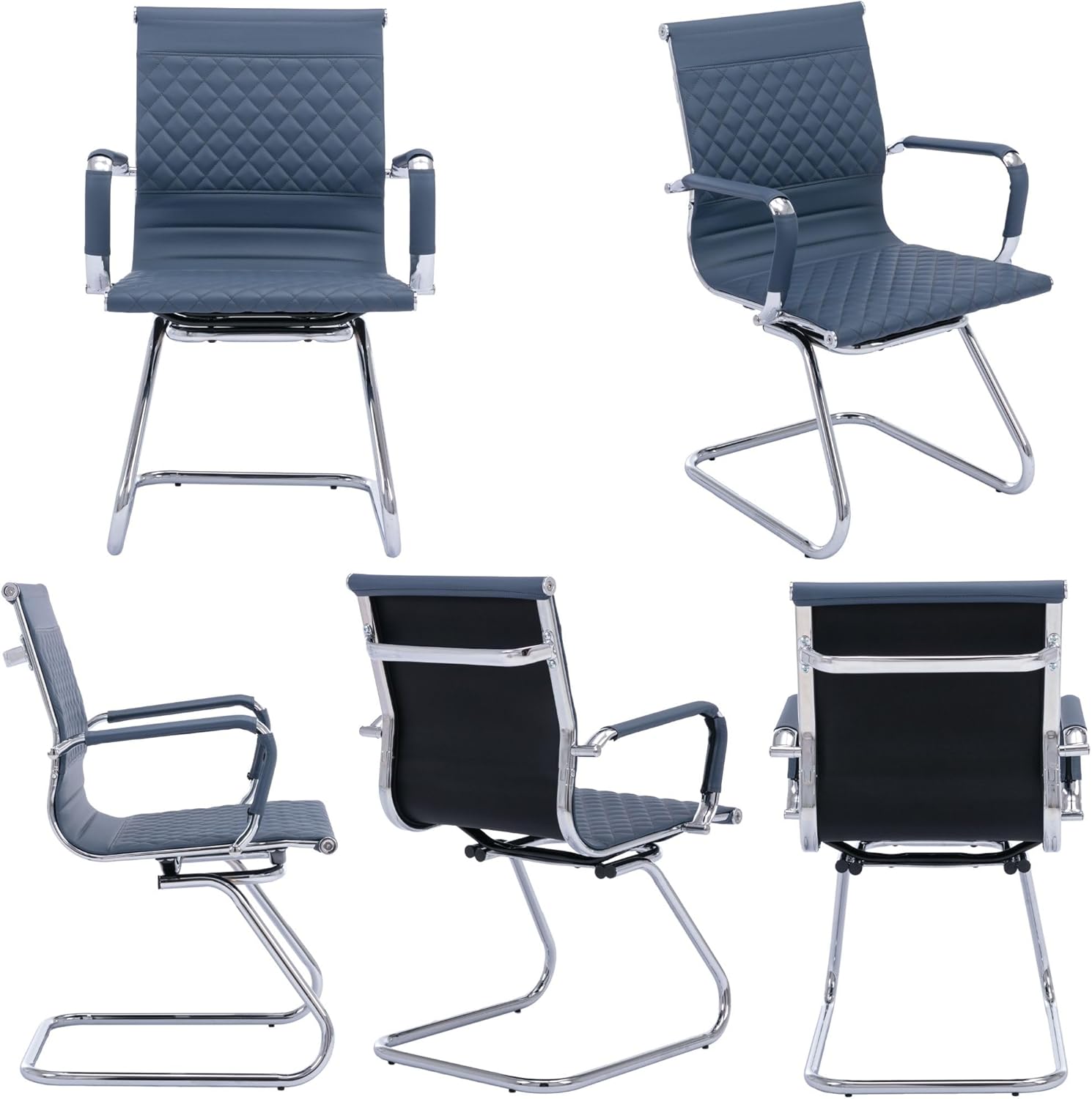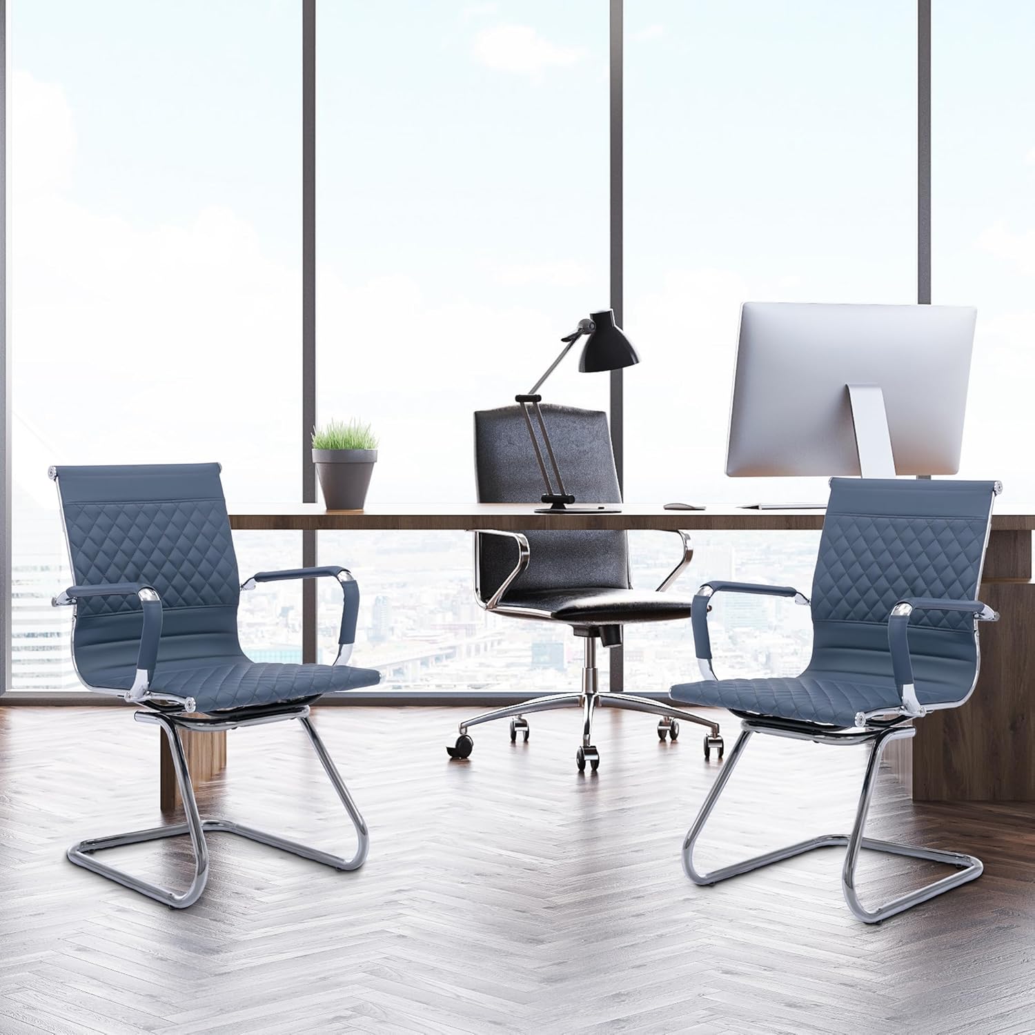 Office Guest Chairs Reception Chairs Waiting Room Chairs Set of 2 Conference Room Chair with Mid Back, Modern PU Leather Desk Chairs, Navy