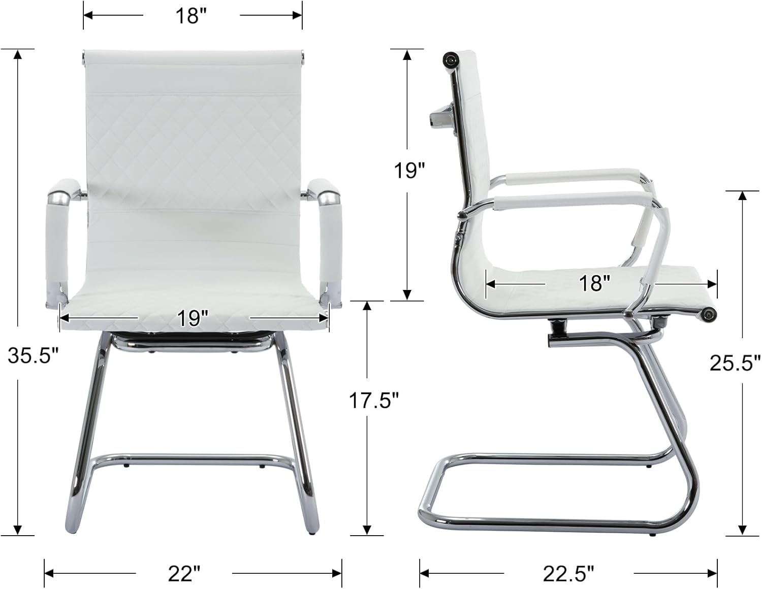 Office Guest Chairs Reception Chairs Waiting Room Chairs Set of 2 Conference Room Chair with Mid Back, Modern PU Leather Desk Chair, White