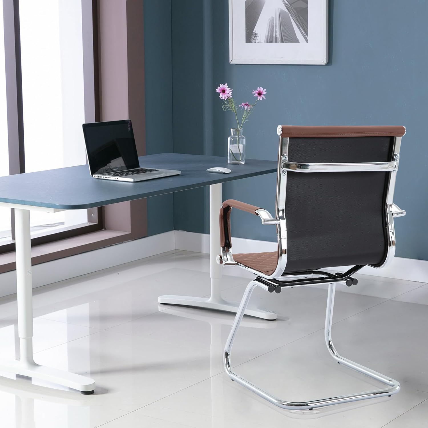 Office Guest Reception Chairs Set of 4 - Modern PU Leather Conference Room Chair With Mid Back for Waiting Room, Desk - Coffee