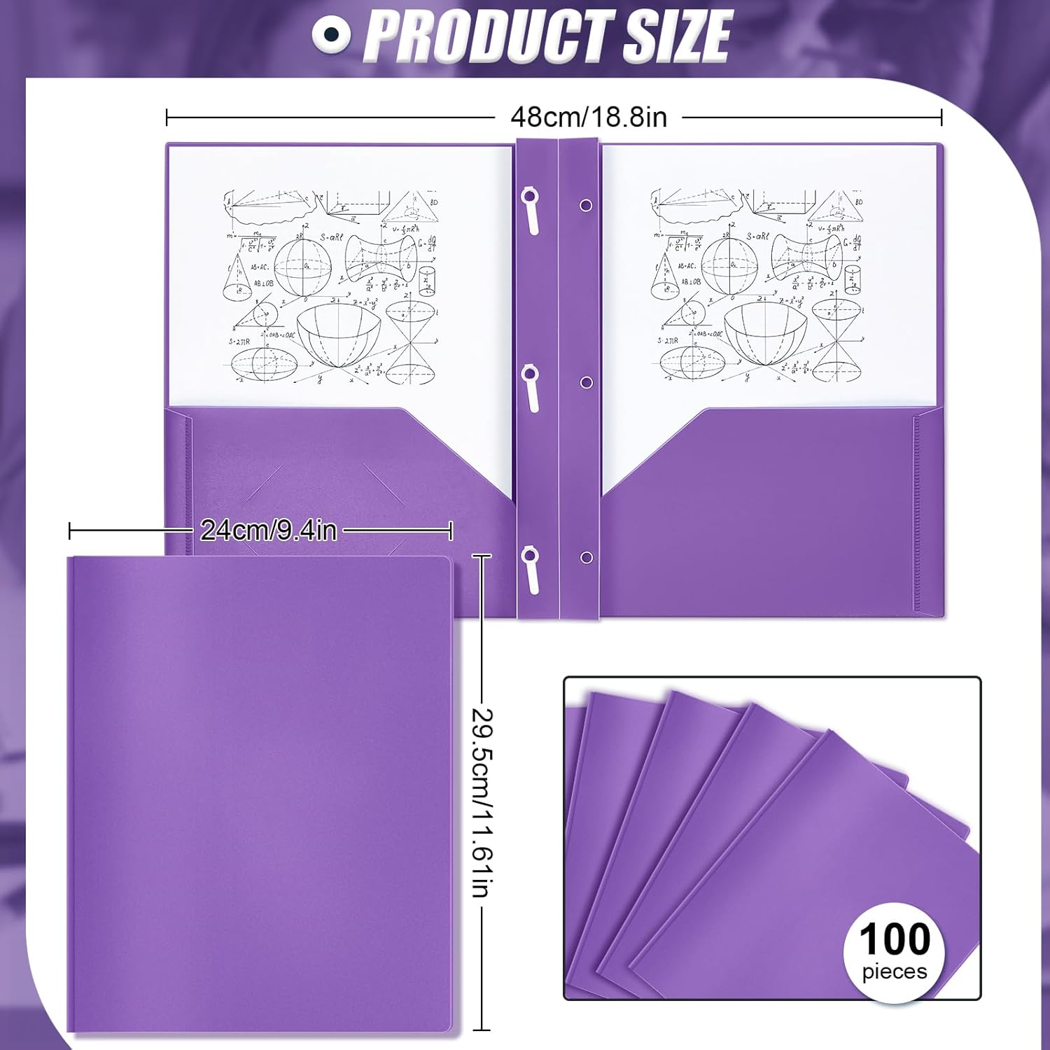 Lincia 100 Pcs Plastic Folders with Pockets and Prong Folders with Prongs Plastic Folders with 2 Pockets Pocket Folders for Office, School for Students, Teachers, Office Workers (Purple)