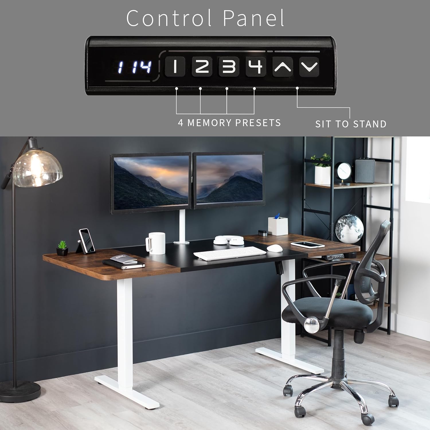 VIVO Electric 71 x 30 in Rustic Standing Desk, Memory Height Adjustment, 1B Series, Black and Vintage Brown Top, White Frame, DESK-KIT-1W7BN