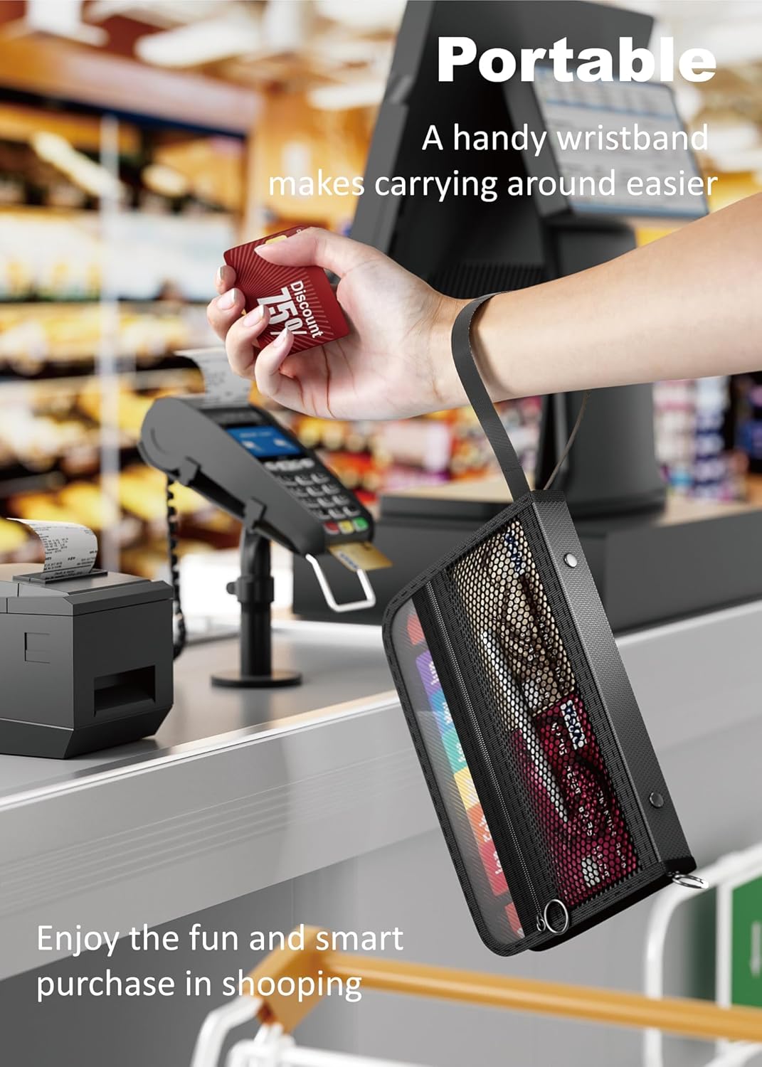 - 13 Real Pockets: 12 accordion pockets, roomy for all types of coupons and receipts, each section is sealed so the small items will not fall underneath. And a extra front mesh pocket can hold a pen, shopper card and credit card