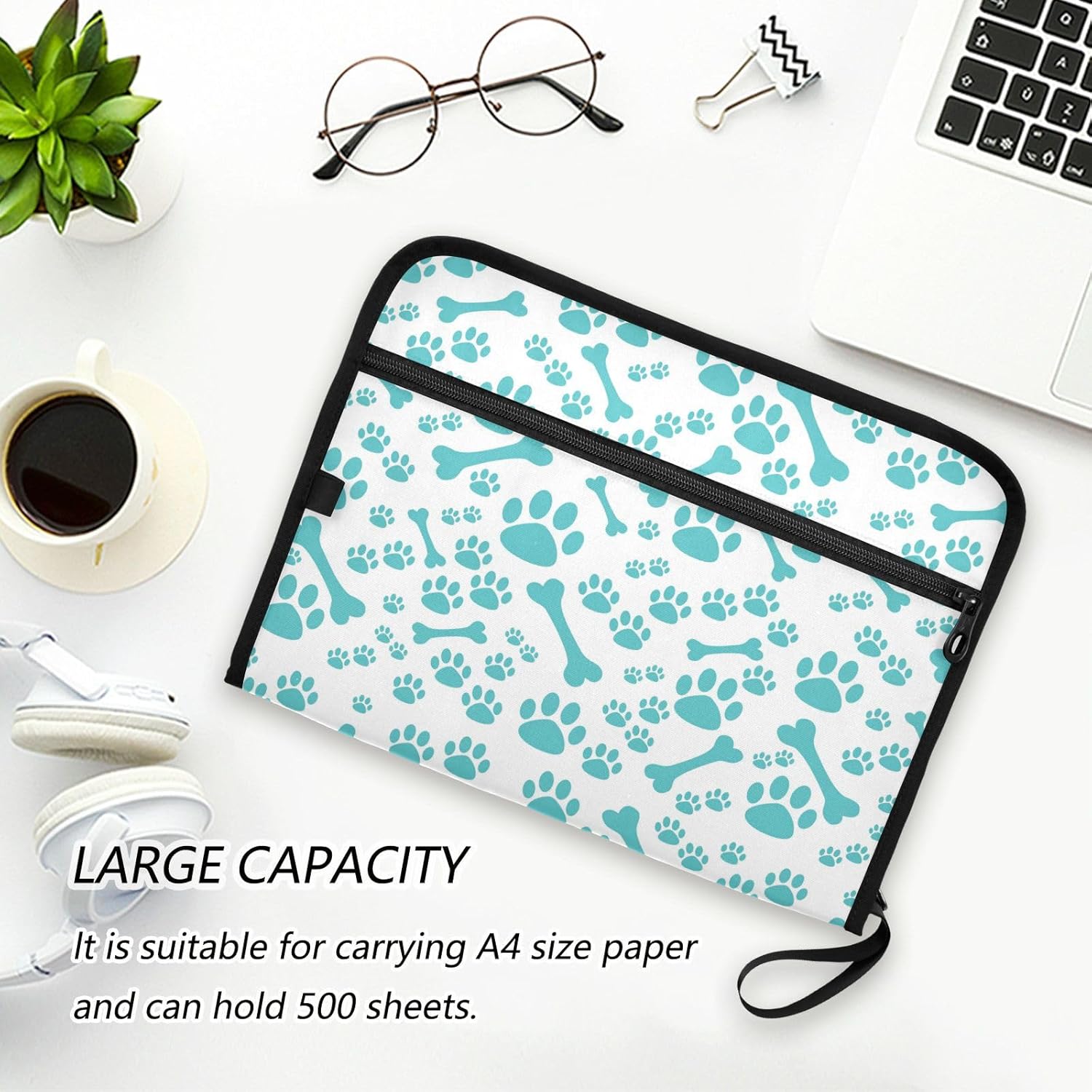 Gredecor 13 Pockets File Folder Organizer A4/Letter Water Resistant Sky Blue Dog Bone Paw Document Bag with Zipper Filing Folder Expanding File Pouch Storage for School Office