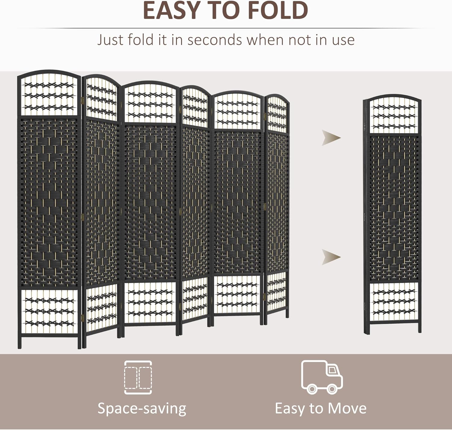 HOMCOM 6 Panel Room Divider, Folding Privacy Screen, 5.6' Room Separator, Wave Fiber Freestanding Partition Wall Divider, Black