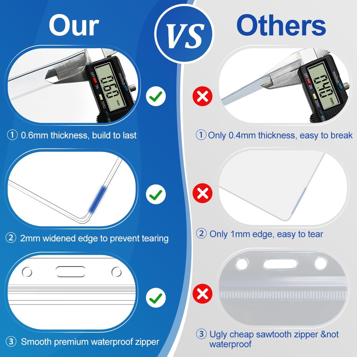 - Easy to Use: Seal-able zipper design makes badge covers easier to use. The holes on both sides are pre-punched for use with lanyards, badge clips or retractable carabiner reel clips