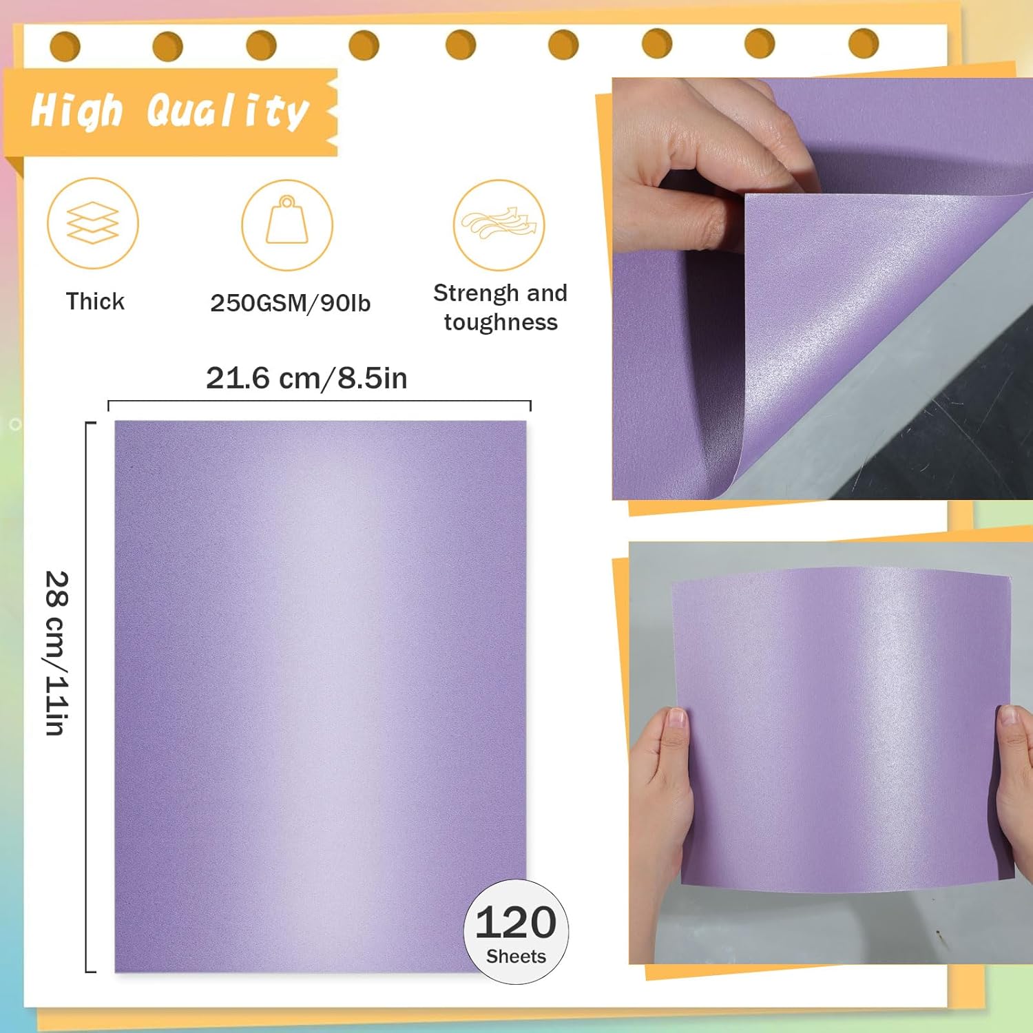 - Purple Shimmer Cardstock: Each package includes 120 sheets of purple shimmer paper, measures 8.5 x 11 inches in size, 250gsm/92lb in weight. Double sided Design, thick and sturdy, no tearing and bending for Crafts, DIY Greeting Card, Wedding, Birthday, Invitations, Thank You Cards & All Occasion