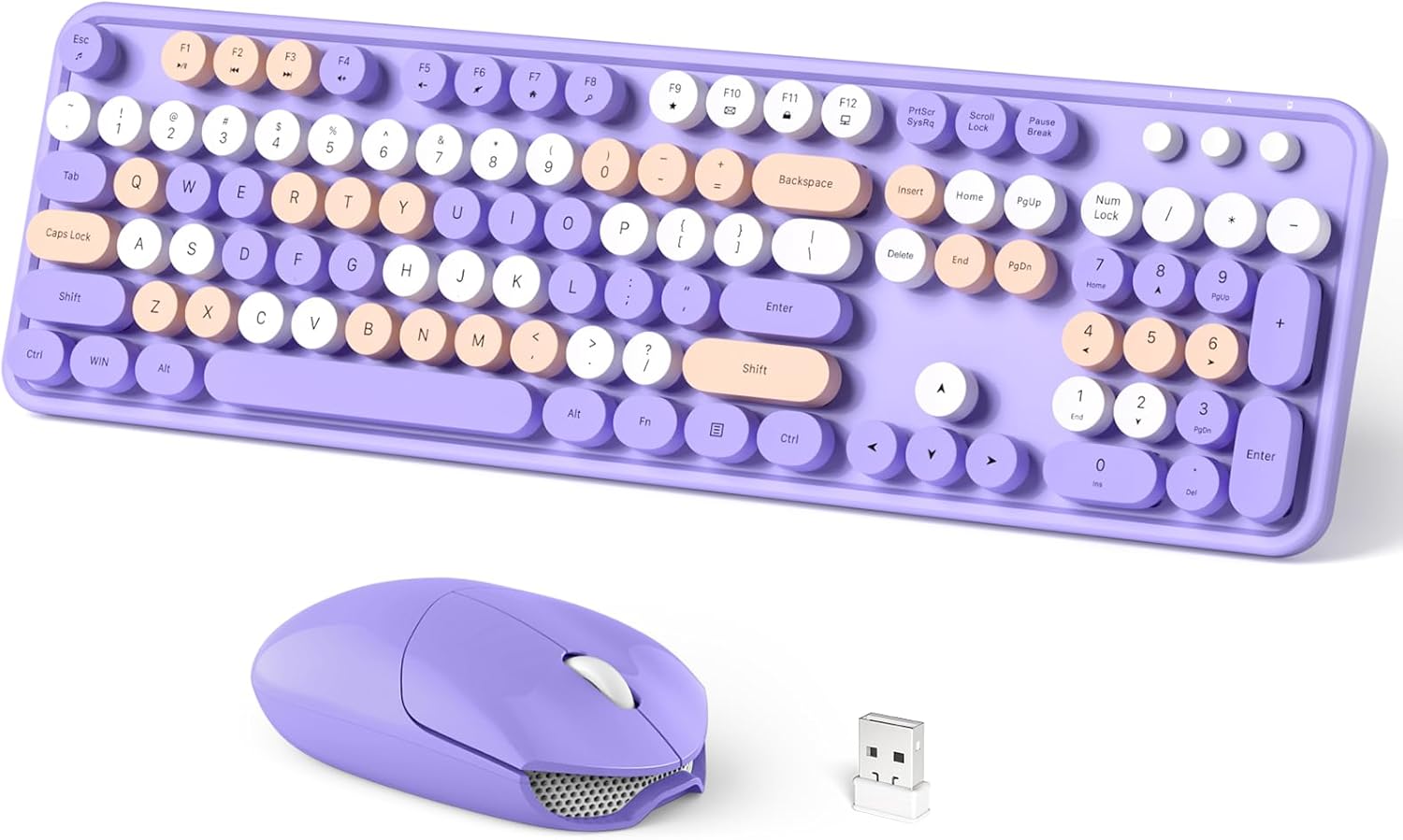 Wireless Keyboard and Mouse Combo, 104 Keys Full-Sized Typewriter Keyboards, 2.4 GHz USB Receiver Plug and Play, for Windows, PC, Laptop, Desktop (Purple Colorful)