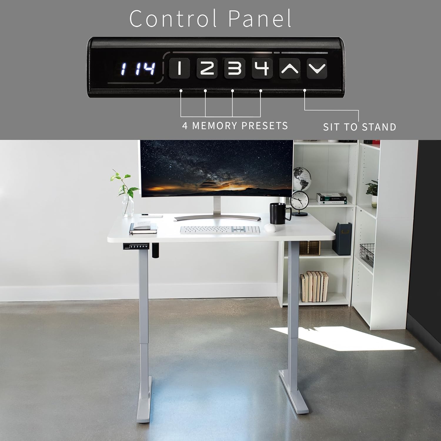 - Memory Controller: The easy-to-use push-button controller features 4 memory presets to save your desired heights. With a simple click of a button, you can say goodbye to long hours of sitting and end the day feeling energized and refreshed