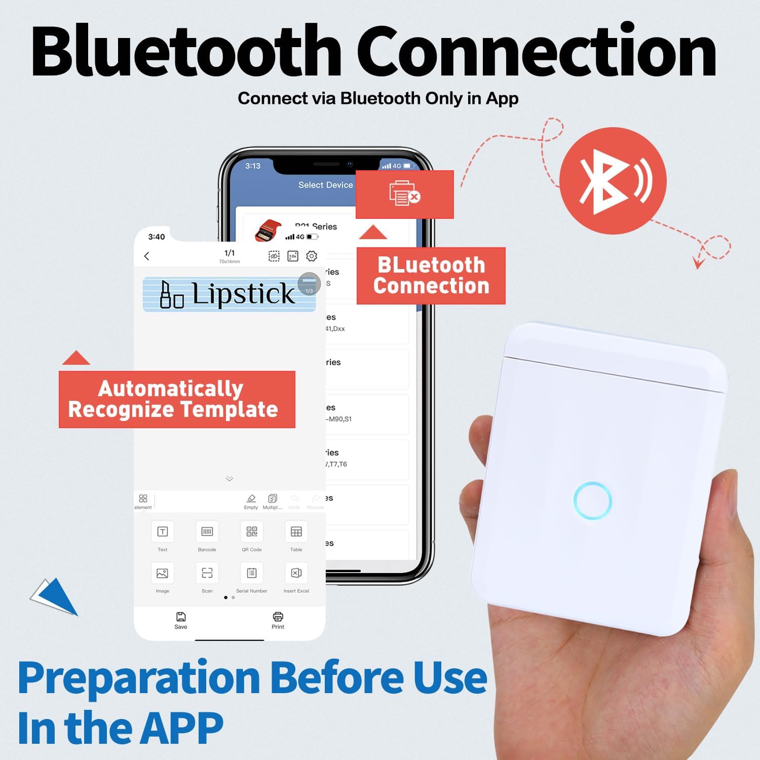 - 【Save Money】 - Bluetooth Label Printer with direct thermal technology, don't require ink, toner, or ribbons. This inkless label printer lower cost compared to inkjet printers. A variety of colors and sizes Labels to choose in our store.