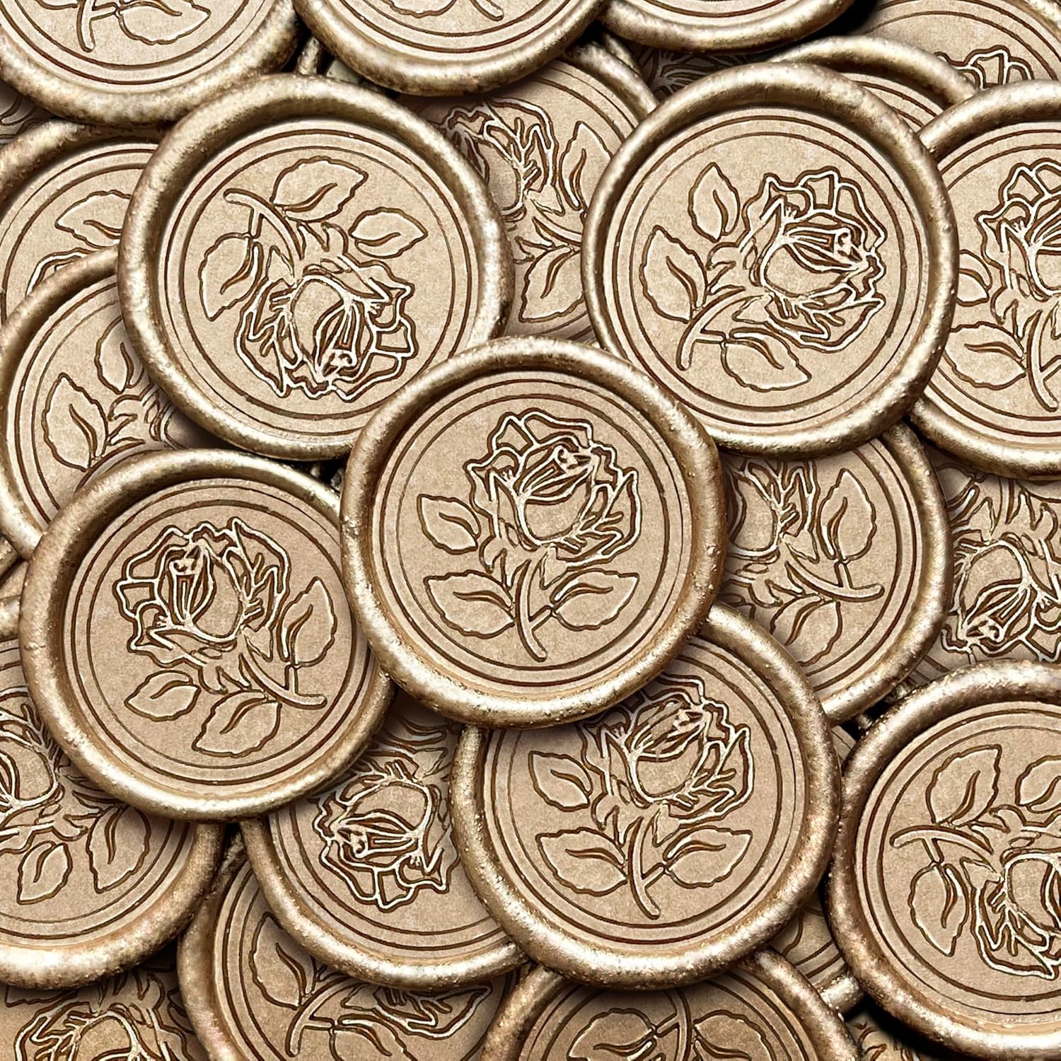 25Pcs Wax Seal Stickers Handmade Envelope Seals Self Adhesive Wax Stickers for Wedding Party Invitations, Envelope, Gift Wrap, Christmas(Rose Style, Champagne Gold)
