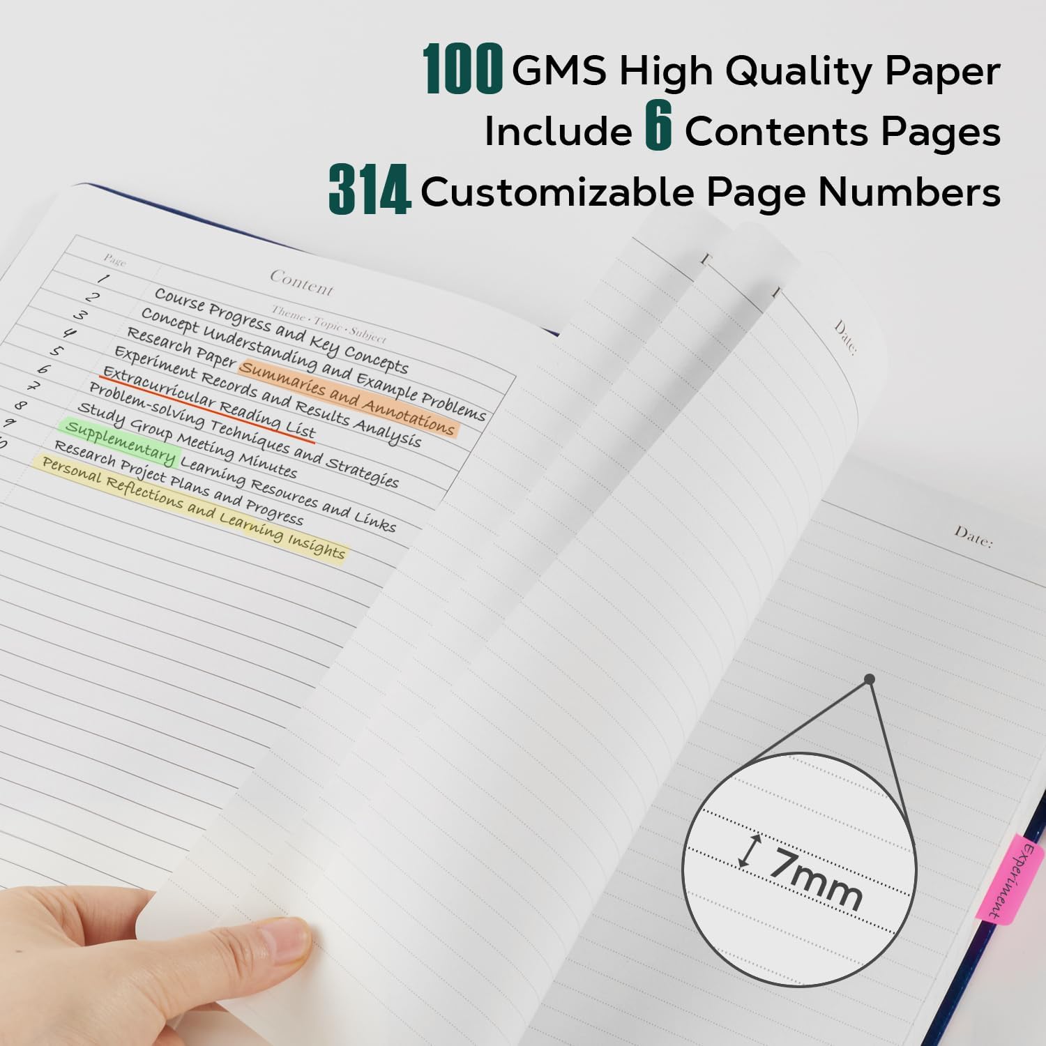 - ă320 Pages Hardcover Thick NotebookăThis large B5 (7.1'' X 10'') size lined notebook journal has a total of 320 pages (including 6 catalog pages), 7mm space classic college ruled notebook, providing you with plenty of writing space. The notebook is made of 100gsm ivory thick paper, the paper is smooth, the writing is smooth, and the ink will not bleed, suitable for most pens.