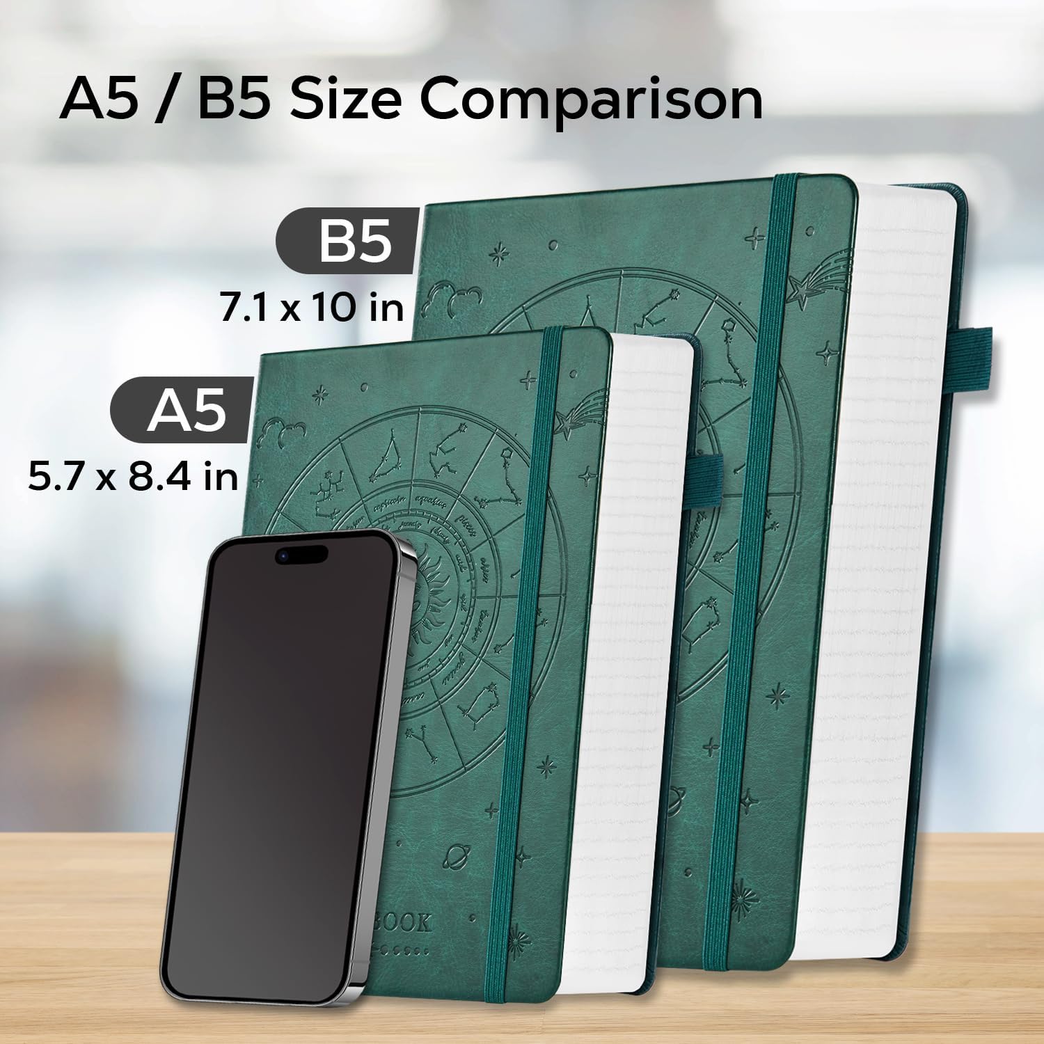 Hardcover Notebook Journal, B5 Lined Daily Journal College Ruled Notebook for Women Men, 320 Pages Large Writing Journal Notebook for School Work, Dark Green Leather Notebook, 7.1'' X 10''