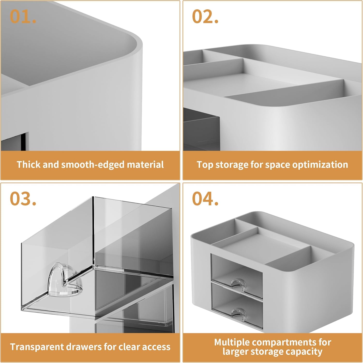 - ăConvenient And MultifuctionăThis Desk Caddy is no installation required not only perfect for storing your desktop stationery and many other desk widgets but also great for storing your makeup brushes, nail polishes, lipsticks, and other small personal items sorted by type. The transparent drawer makes it way easier to find what you need! and You can put any other daily necessities on the organizer, It helps you keep your stuff organized.