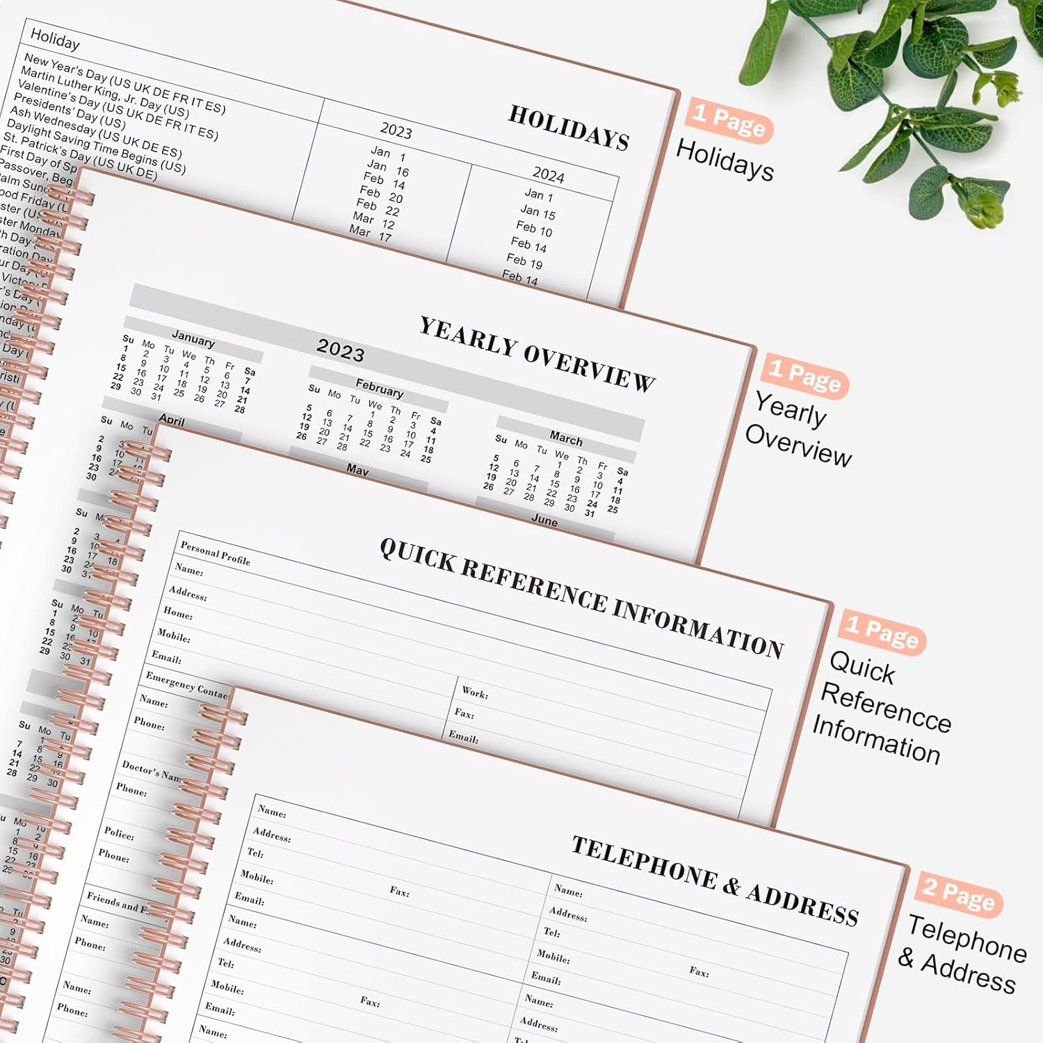 - Plenty of Space for Your Daily Activities: Sized at 8.5 x 11 inches, there's ample room to jot down your daily activities. With 1 quick reference page, 2 telephone & address pages, a convenient list of holidays, reference calendars, and a whopping 195 daily pages, this to do list notebook will accommodate your scheduling needs for over 6 months.