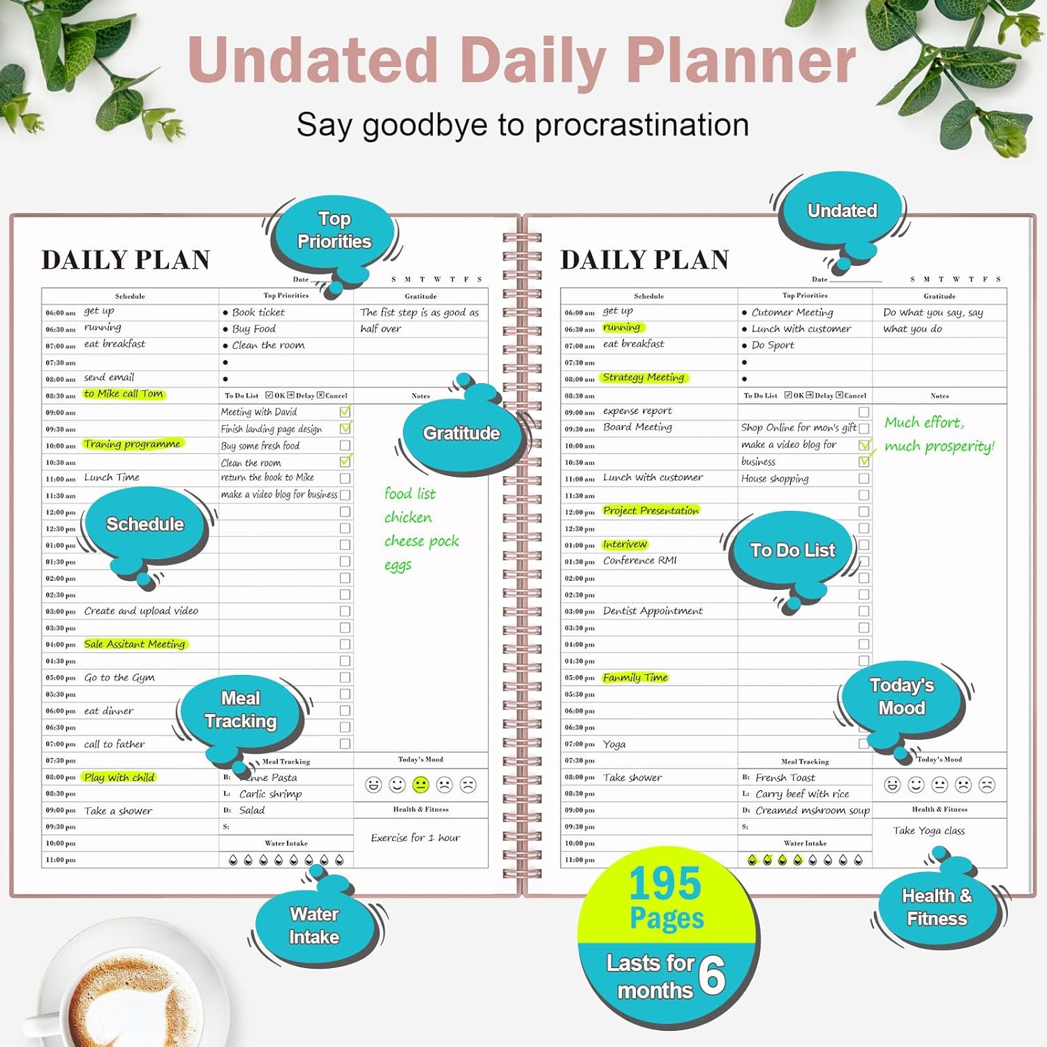 - Get Closer to Your Goals: This undated planner empowers you to track every appointment, set and achieve your top goals, and tackle tasks efficiently. Whether you're a business professional, college student, or teacher, this organizer planner is the perfect companion to help you do more, achieve more, and save valuable time.
