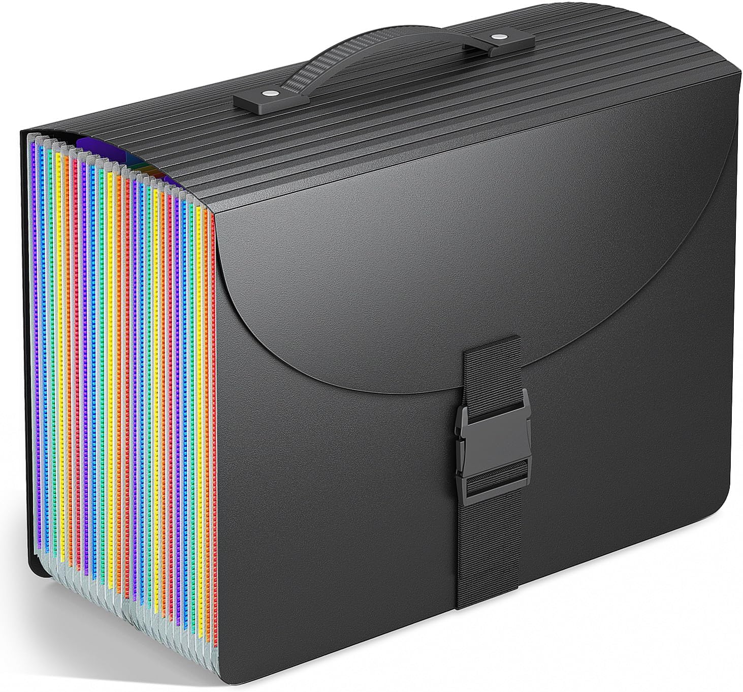- ✔【HIGH CLASS】 Durable Plastic Handle, the lid is connected to the bottom by a beautiful adjustable buckle,make the folder instantly looks more fashion,when you hold a good amount of documents into file folders,easily take away all important documents anywhere and the buckle is perfect to protect the safety of files,successfully upgraded from traditional accordion file organizer.