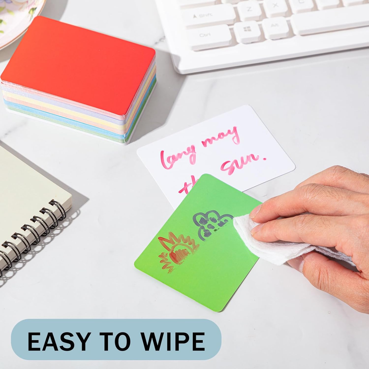 Harloon 100 Pcs Dry Erase Index Cards 2.5 x 3.5 Inch Laminated Reusable Dry Erase Note Cards Sheets for Office to Do List (Colorful)