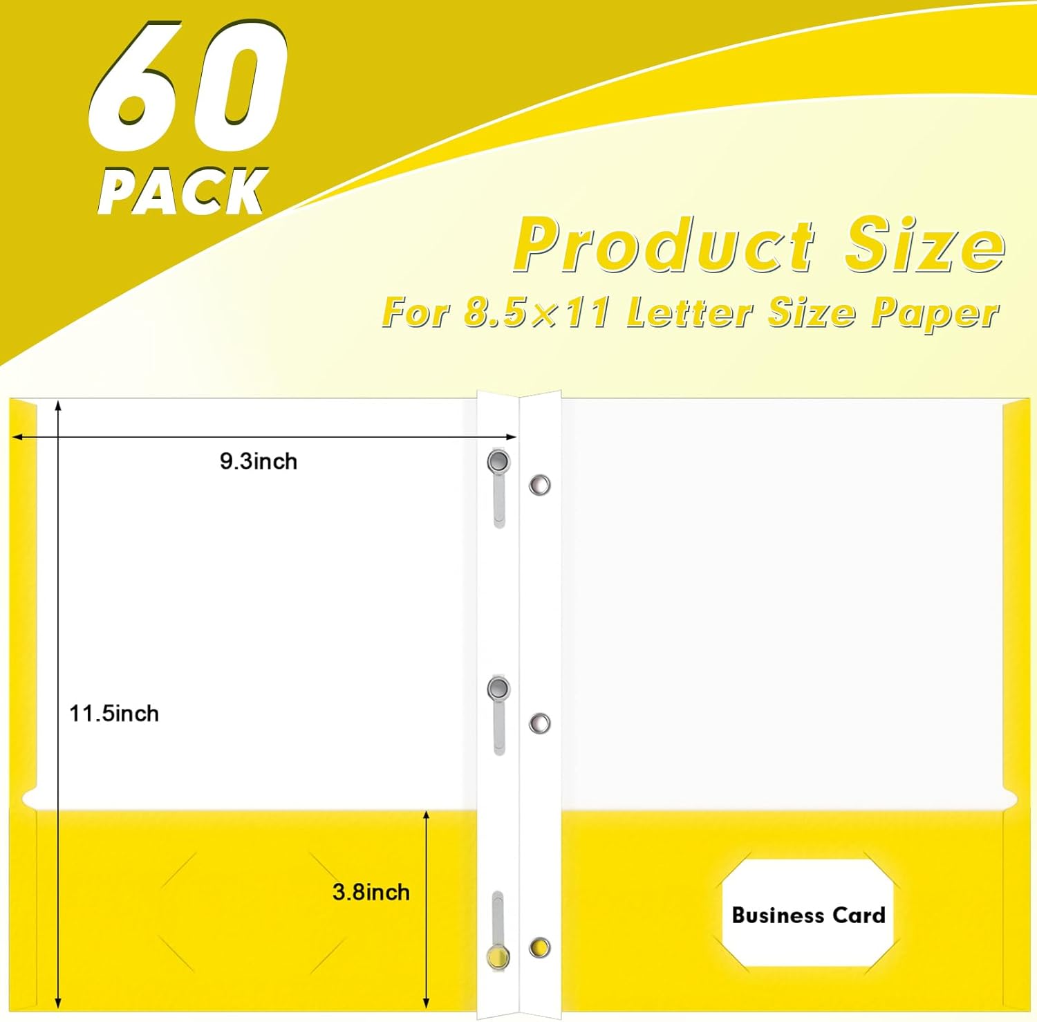 Two Pocket Folders, PANDRI 60 Pack Two Pocket Folders with Prongs, 3 Prong Folders Designed for Office and Classroom, Letter Size Yellow