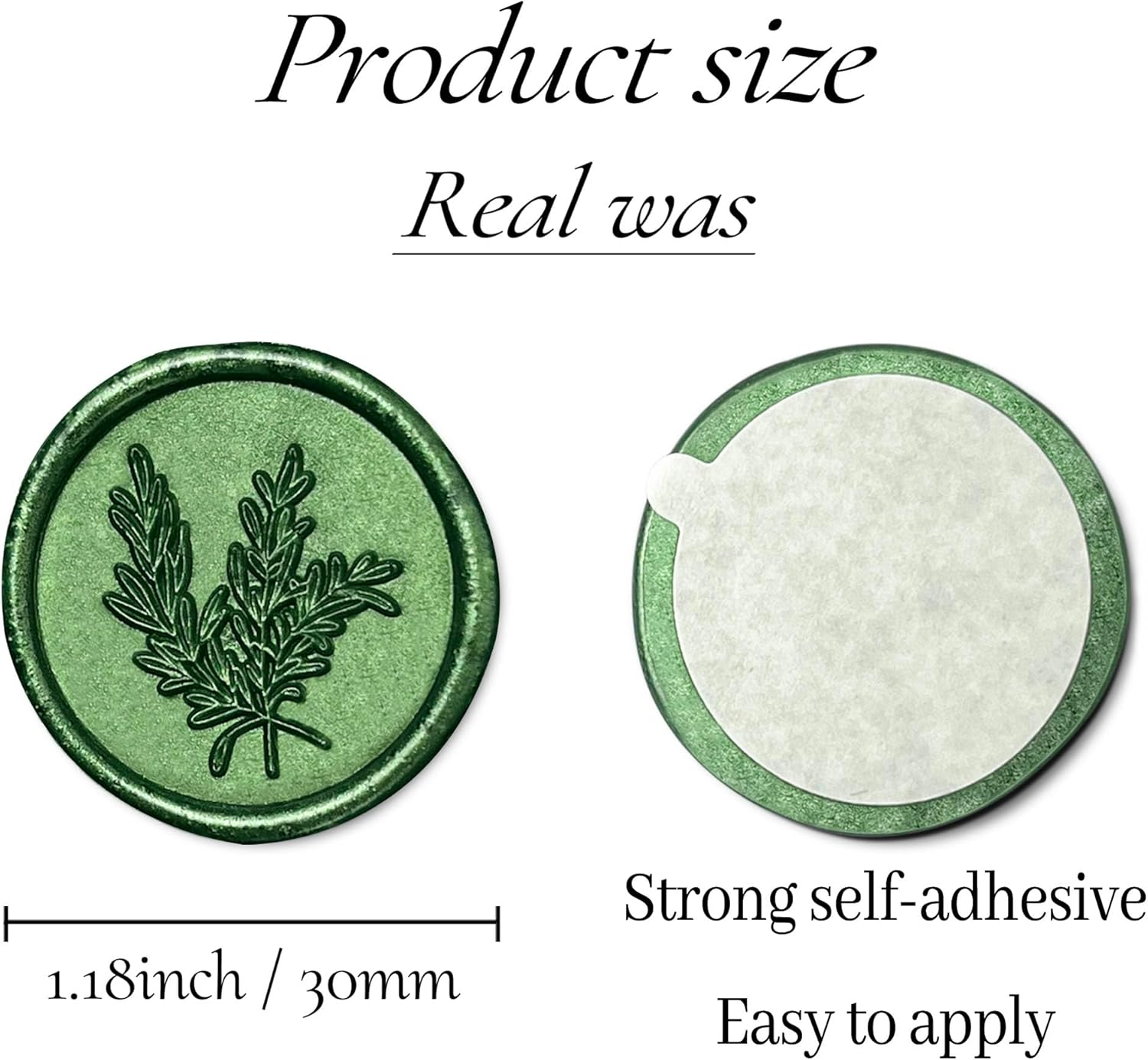 - PACKAGE CONTENT:You will get 100pcs Rosemary Style , wax seal sticker made by pure hand, the wax seal sticker is 1.18 inches/30 mm in diameter, each Rosemary wax seal has almost the same size of adhesive on the back of the sticker, perfect for mailing, you don't need to worry about the strength of the adhesive at all.