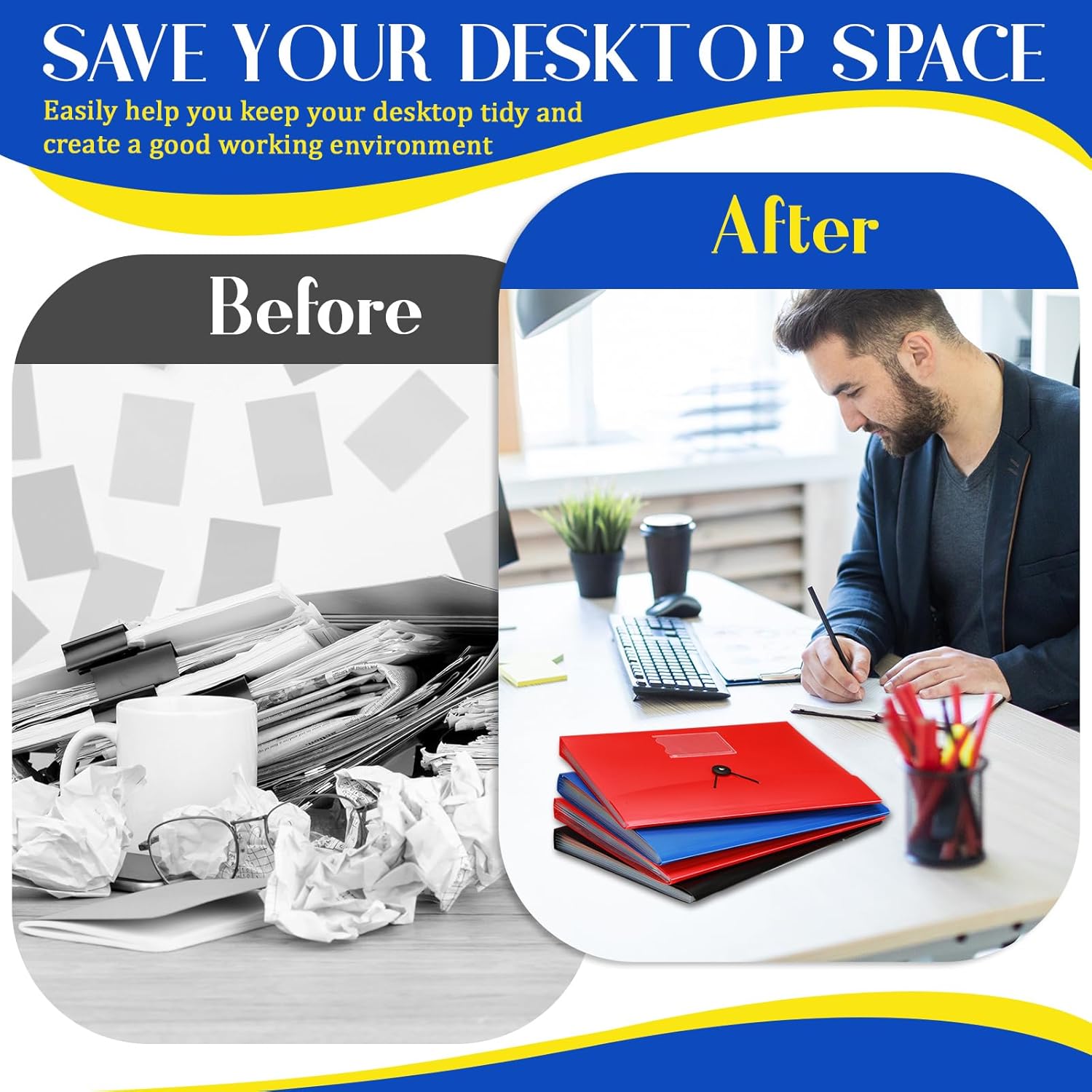 - Convenient Colorful Compartments: the file folders feature vibrant compartments, allowing for easy and efficient file classification; The colorful design enables you to quickly identify and retrieve the files you need, enhancing productivity and eliminating the hassle of searching through piles of papers