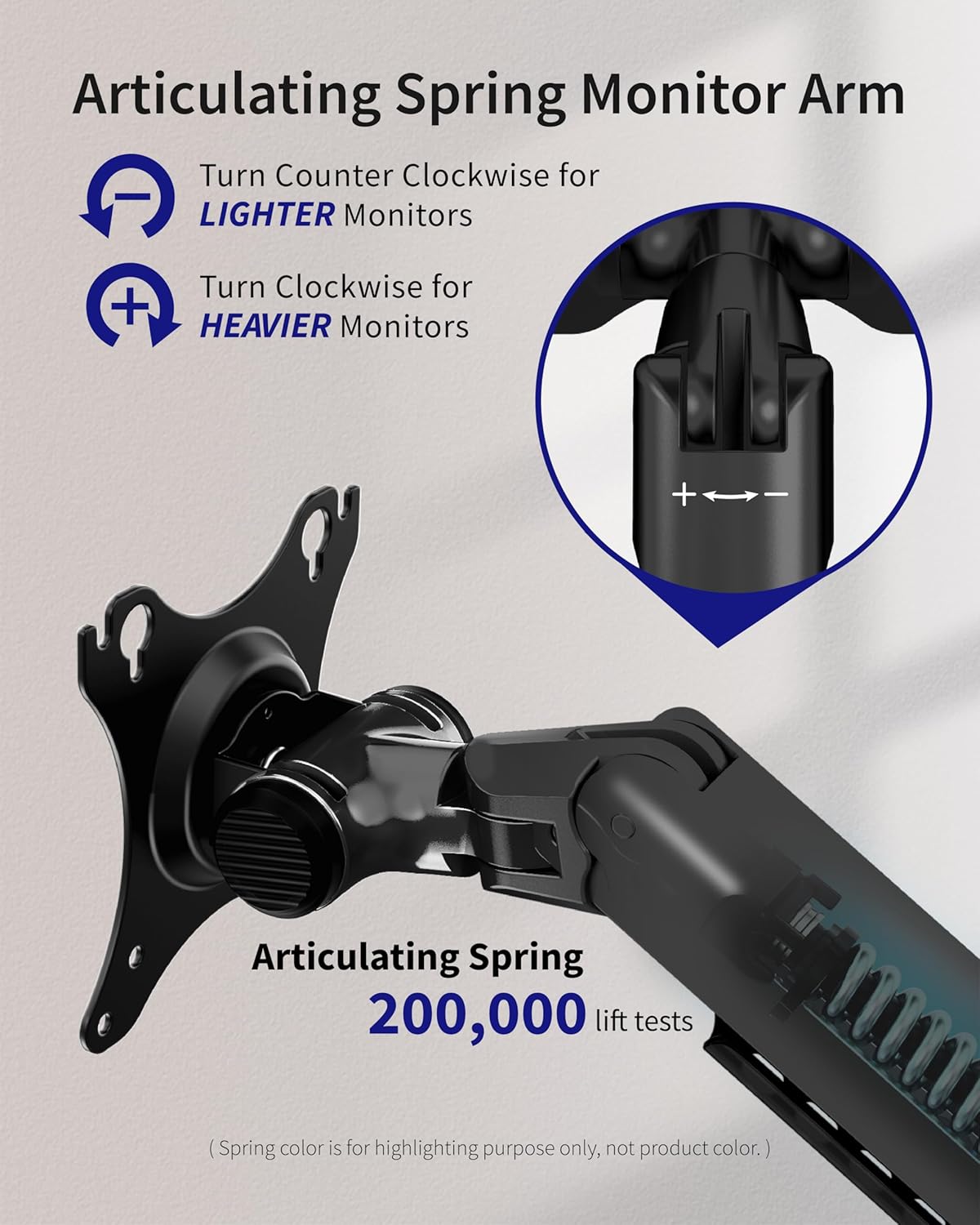 - 【Premium Spring Arm】 ErgoUnion computer monitor arm features a flexible movement structure, enabling instant and effortless adjustments to achieve the optimal orientation for work.