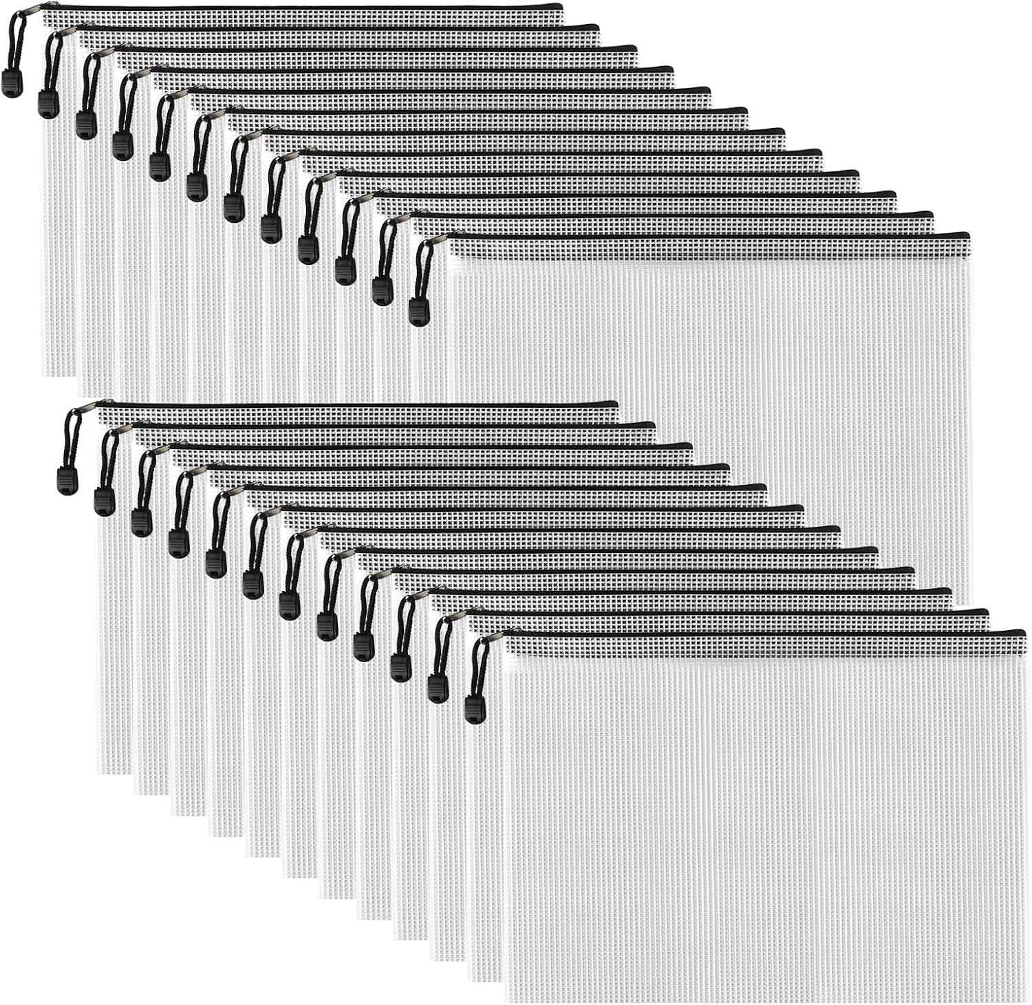 D-KINGCHY 24Pcs Zipper Storage Bags, Plastic Mesh Zippered Pouch for Organization, Waterproof Versatile Bags for Office Supplies School Travel