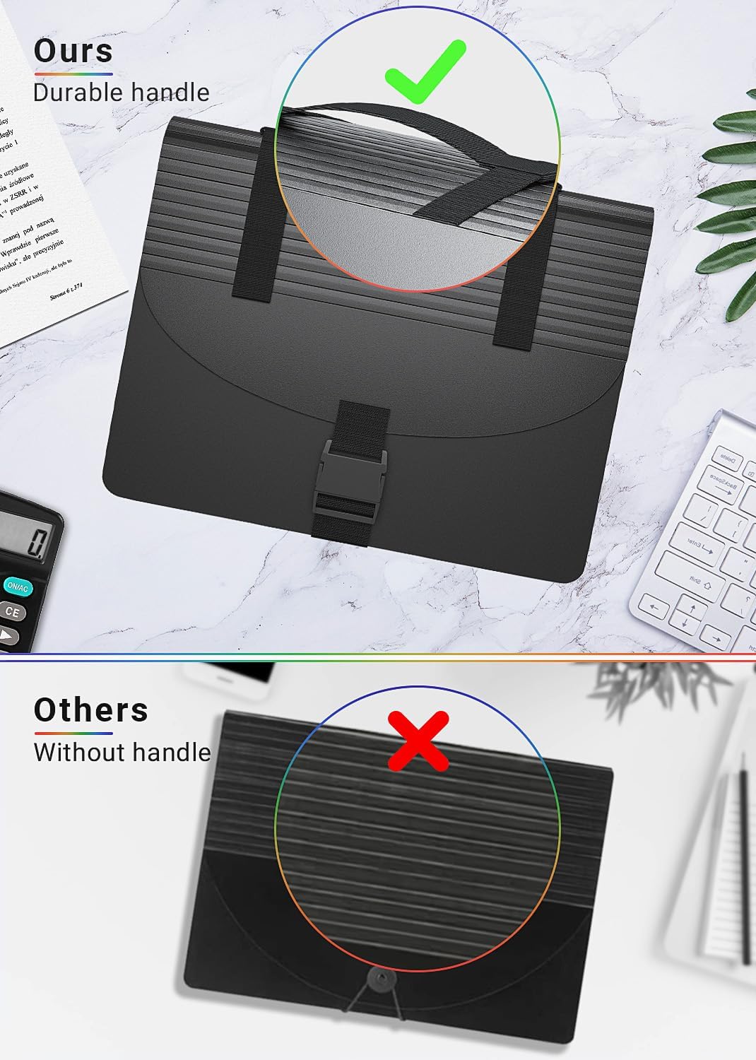 - ✔【SUPERIORITY】This innovative file organizer,designed with a durable handle and a fashion buckle, successfully upgraded from traditional expanding file folders. More easily take away all important documents any time and anywhere when hold a good amount of documents, the buckle is very good to protect the safety of files.