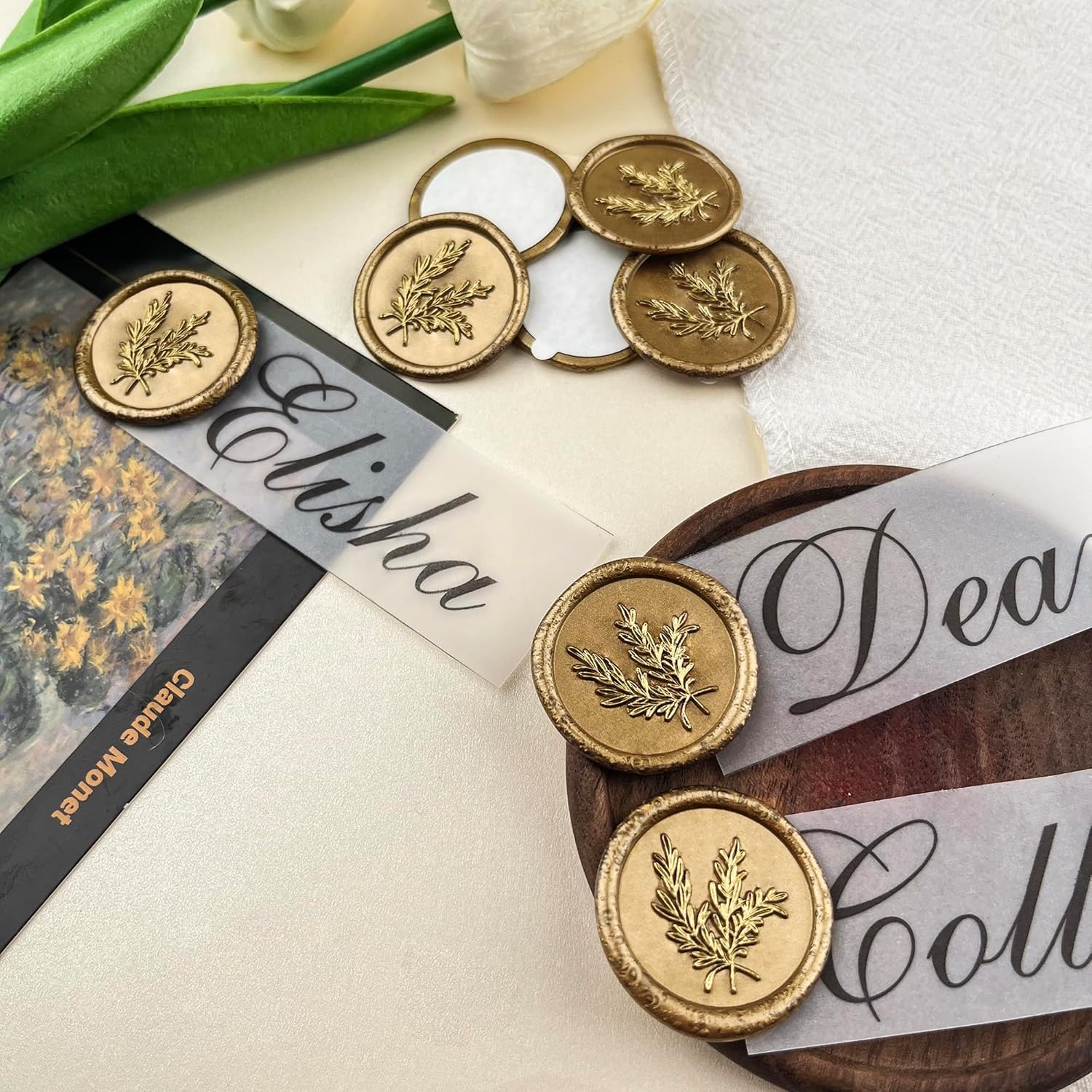 - PACKAGE CONTENT: You will get 25pcs Rosemary Style , wax seal sticker made by pure hand, the wax seal sticker is 1.18 inches/30 mm in diameter, each Rosemary wax seal has almost the same size of adhesive on the back of the sticker, perfect for mailing, you don't need to worry about the strength of the adhesive at all.