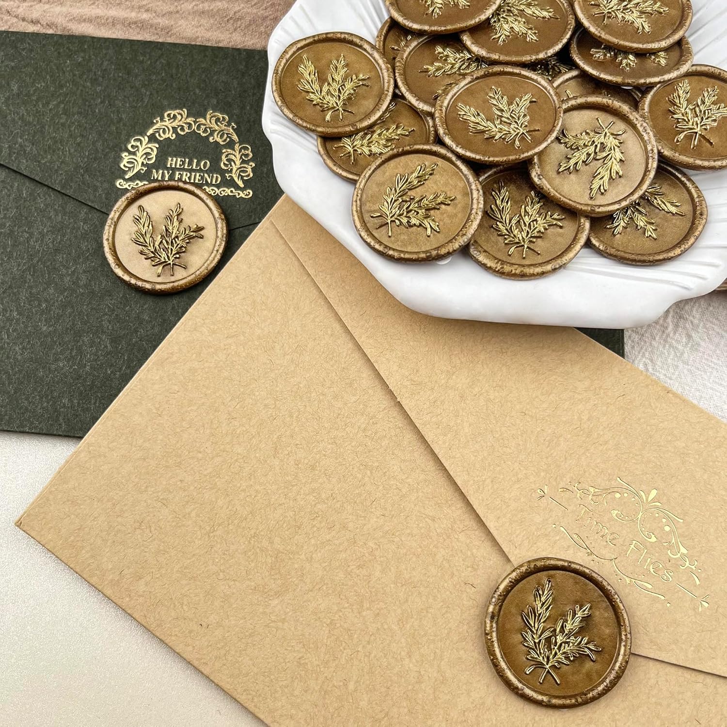 25Pcs Wax Seal Stickers Handmade Envelope Seals Self Adhesive Wax Stickers for Wedding Party Invitations, Envelope, Gift Wrap, Christmas(Rosemary Style, Bronze)