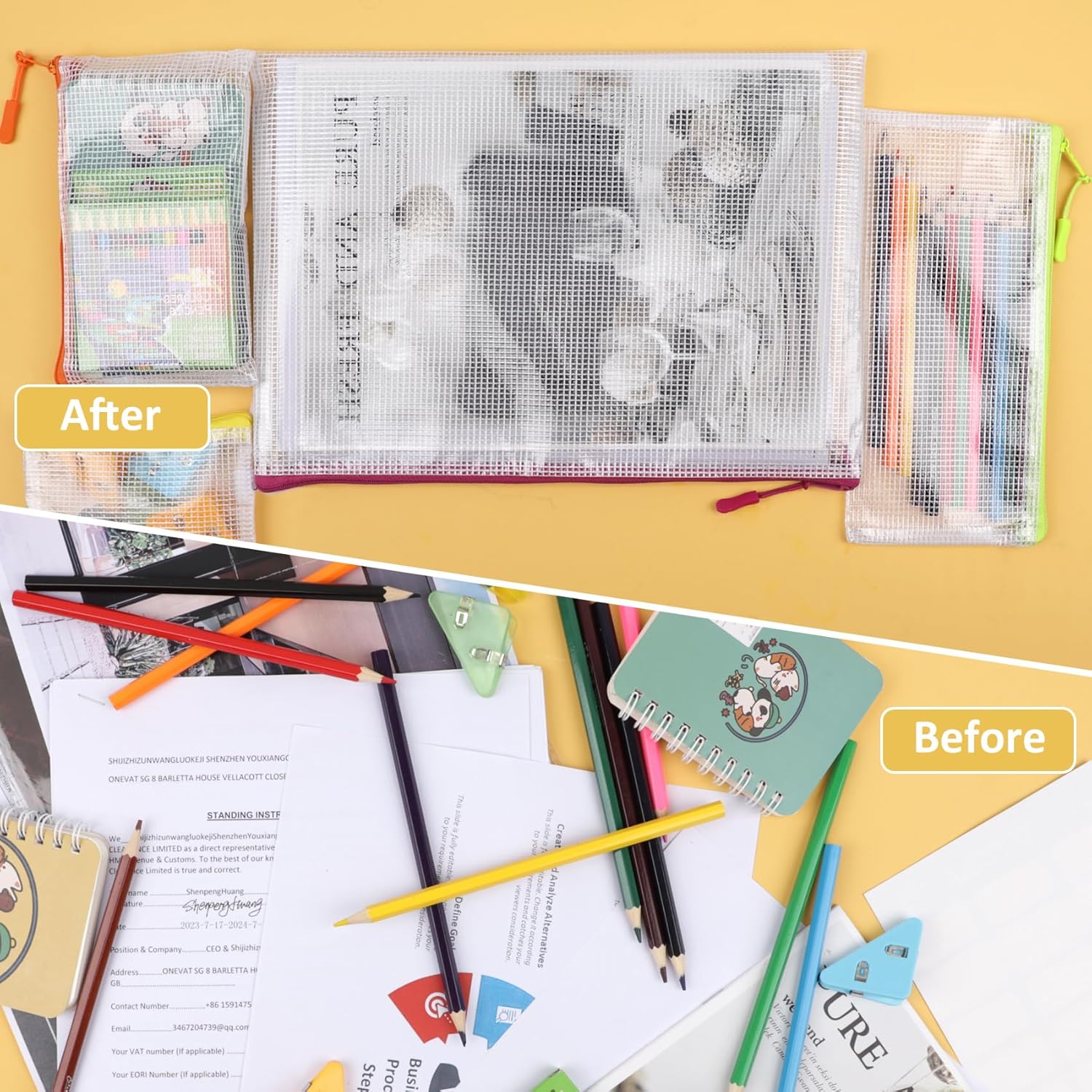 - VARIOUS APPLICATIONS:Mesh zipper pouch serves multiple purposes. It can be used as a travel organizer to store toiletries, makeup, or personal care items, ensuring they are easily accessible during your trips. Moreover, document bag can also be utilized as a storage bag for household items such as cables, stationery, or even toys, helping you declutter and create a tidy living space